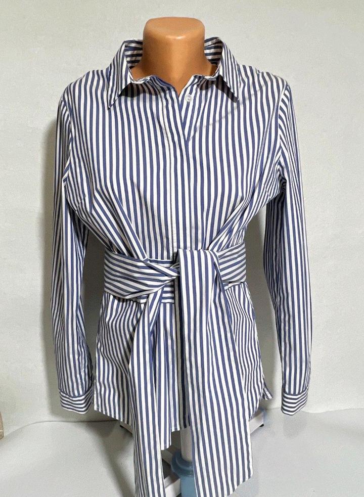 Рубашка блузка M 46 р в полоску с поясом хлопок/нейлонM