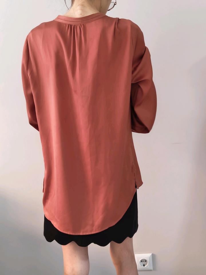 Рубашка/блузка. Бирку срезали так как натирала. Размер 46-48 Написали Zara, но это не точно. Какой-то похожий был бренд. Может быть mango/ H&M. Материал гладкий. Есть дефект на фото, легко зашить. Продаем так как стала большой. Артикул: 298418
