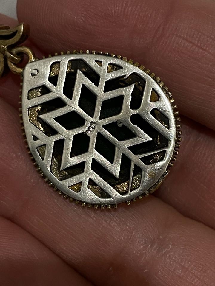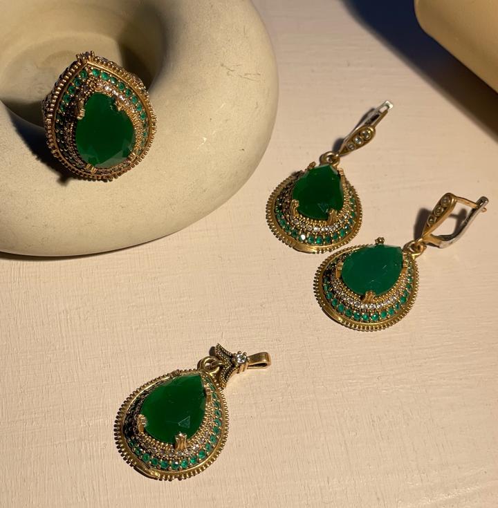 В отличном состоянии, под золото(спереди). Материал серебро, с красиво переливающимися камнями, в наборе кольцо, кулон и серёжки. Кольцо размер 17 примерно Артикул: 299291