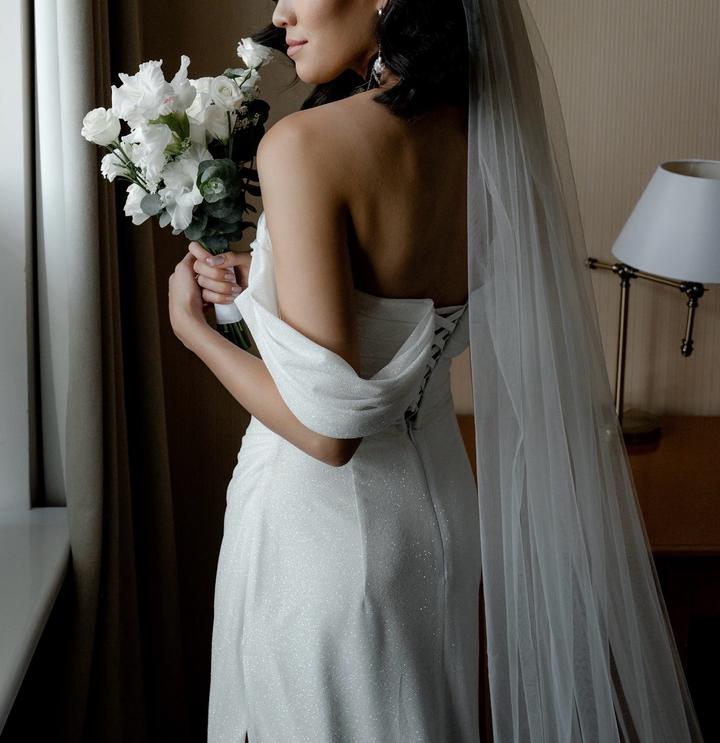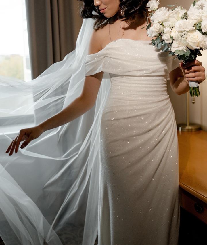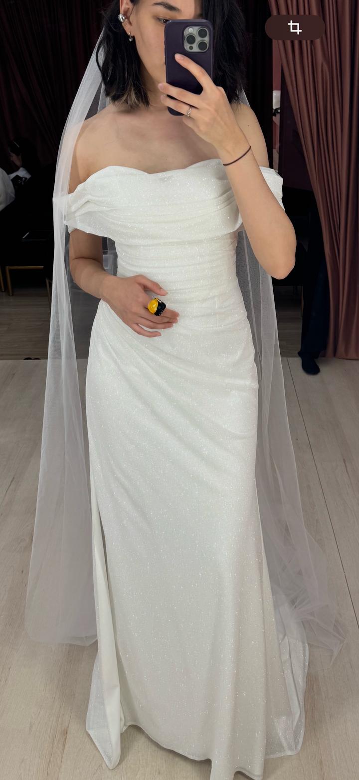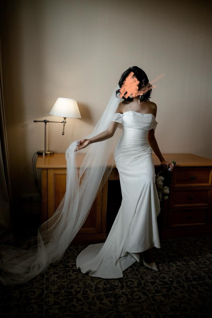 Свадебное платье. Покупала в салоне ivorydress.kz в идеальном состояние. Ткань блестит и переливается. Артикул: 299568