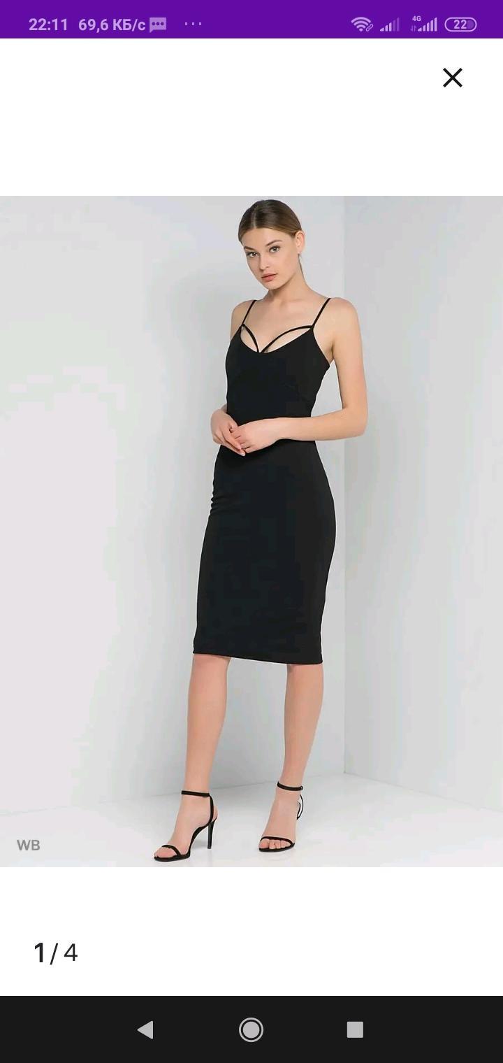 Новое платье вечернее коктейльное S 44 размер черное миди до коленаS/M