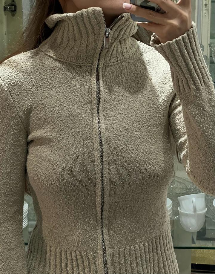 ZARA, размер S. Тёплая кофта на молнии из мягкого петлевого материала, уютная и приятная к телу. Универсальный бежевый цвет, отлично смотрится в повседневных образах. В отличном состоянии. Артикул: 300978