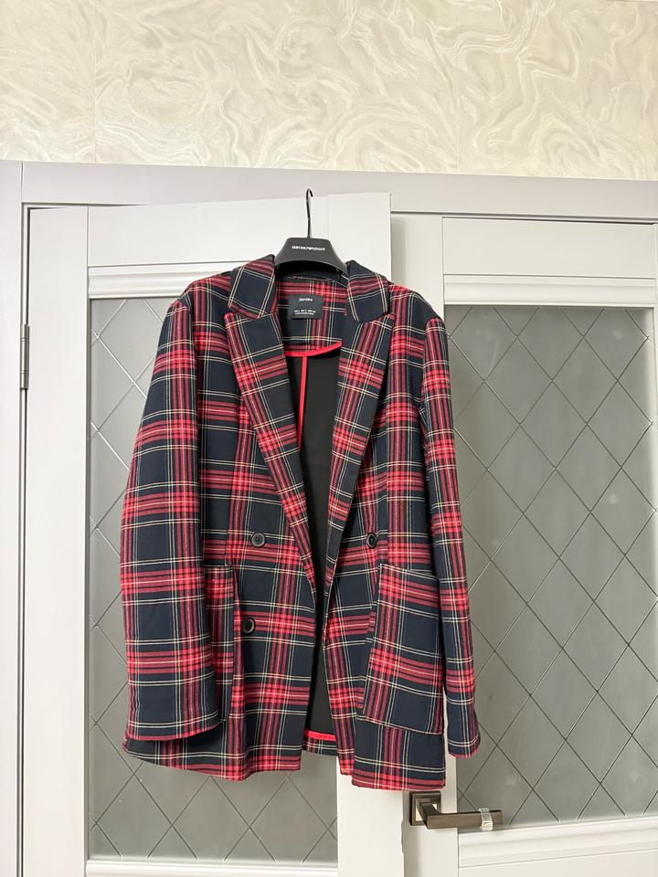 бордовый пиджак в клетку Bershka. размер С. свободного кроя. чуть чуть есть катышки, но убираемо. Артикул: 301523