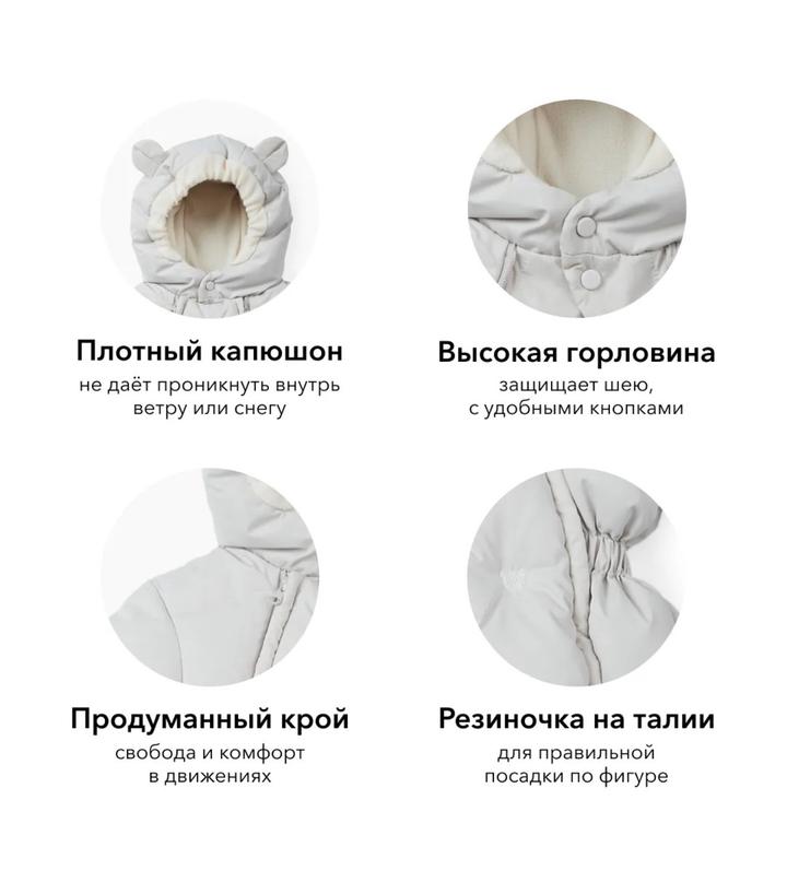 Зимний комбинезон трансформер (конверт и комбинезон) Happy Baby ( original), 1-9 мес, 0 до -25 градусов, наполнитель натуральный- пух и перо гусиное, очень теплый, продуманный до мелочей, новый, светло серый О товаре Детский комбинезон трансформер зимний 2 в 1 от Happy Baby поможет составлять тёплые и стильные образы с 0 месяцев и до 1 года. В режиме «конверт» удобная застёжка по краю позволяет не тревожить новорожденного малыша при одевании и раздевании. Кокон помещается в любую коляску. Артикул: 301583