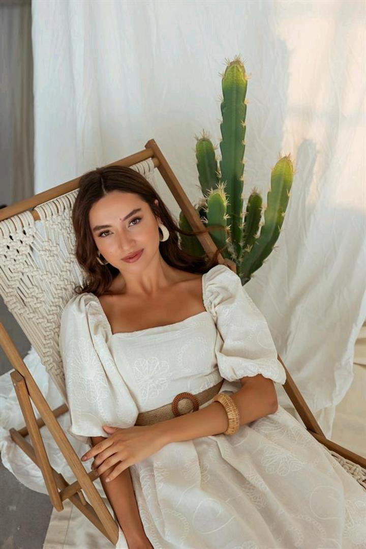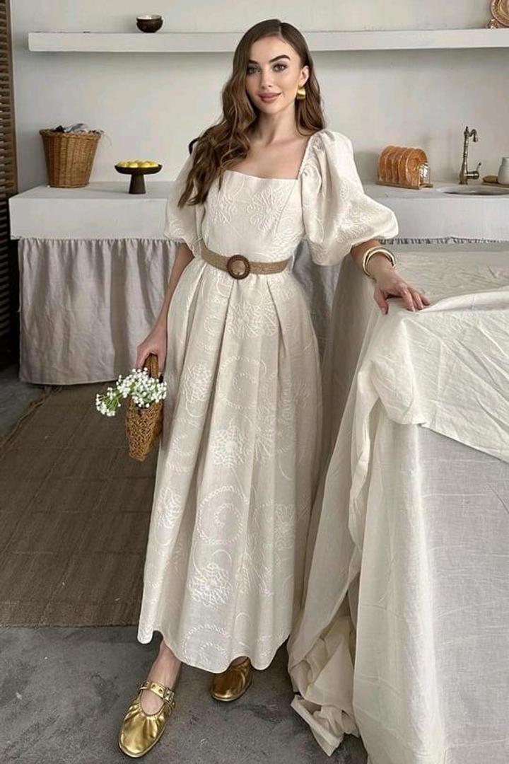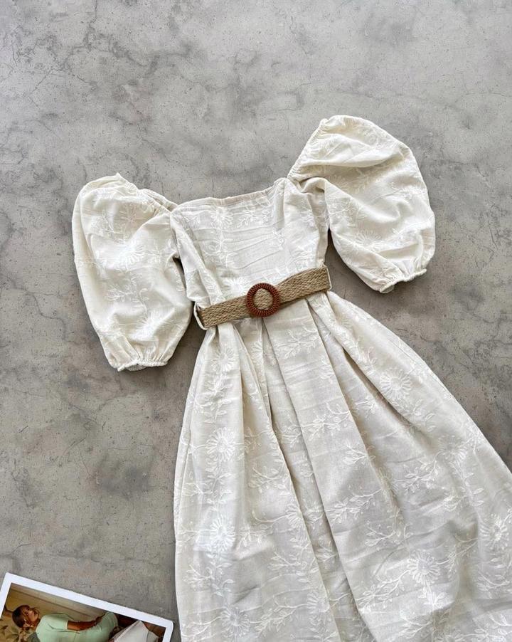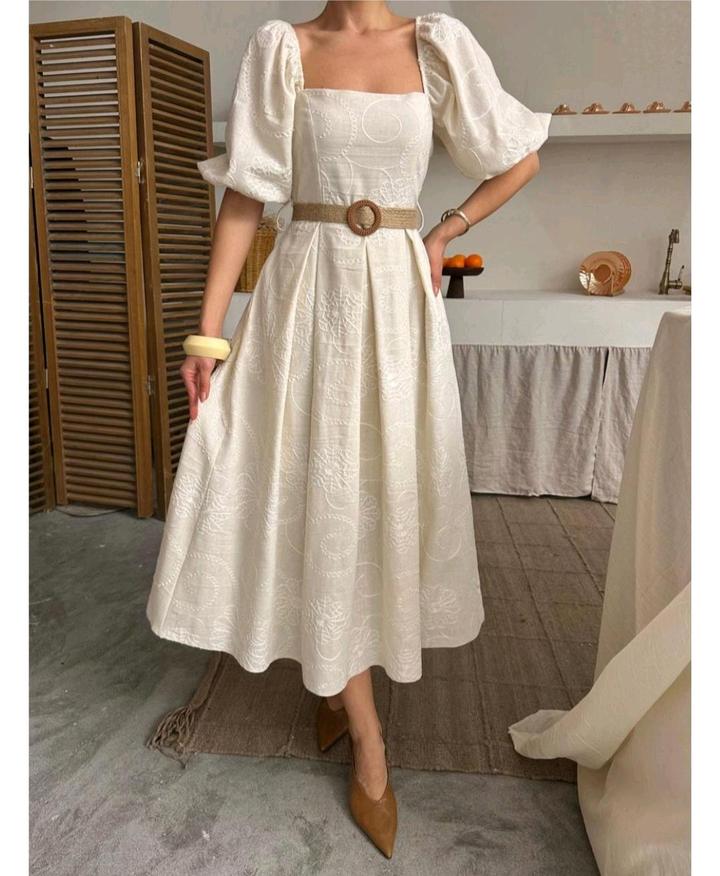 Элегантное платье ELISA выполнено из натурального хлопка с изысканной вышивкой. Модель отличается объёмными рукавами-фонариками, квадратным вырезом и акцентной талией с текстильным поясом. Длина — миди, с пышной юбкой, создающей женственный и утончённый образ. Платье идеально подойдёт для торжеств, фотосессий или стильных ппрогулок. В комплекте соломенный плетёный пояс. Размер 42-44 М. Было надето на пару часов. Состояние ИДЕАЛЬНОЕ!! ТОРГ уместен. Производство TURKIYE Артикул: 301971