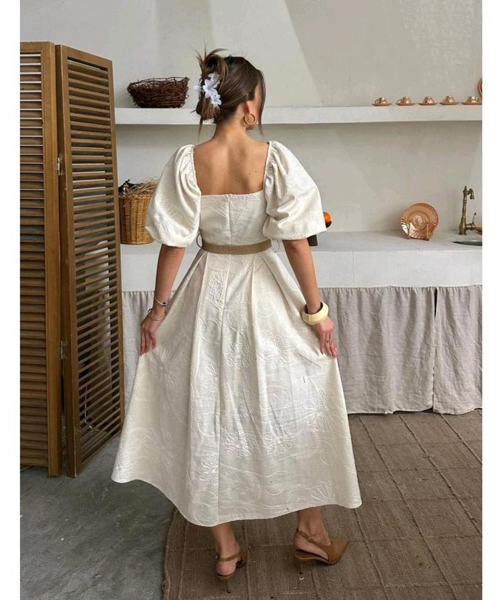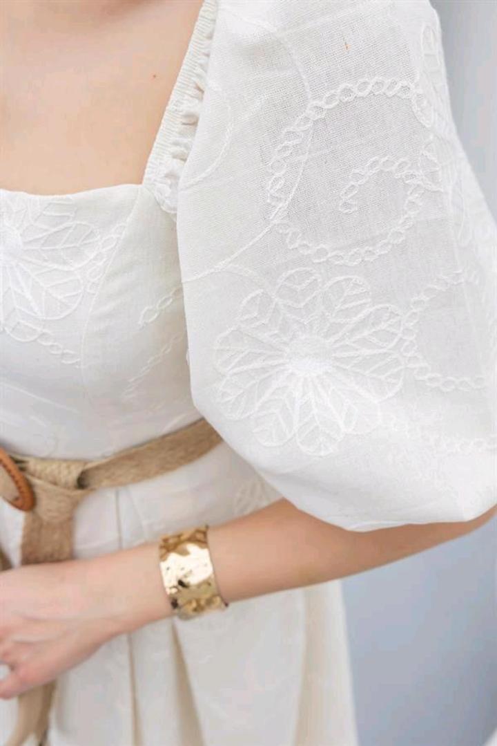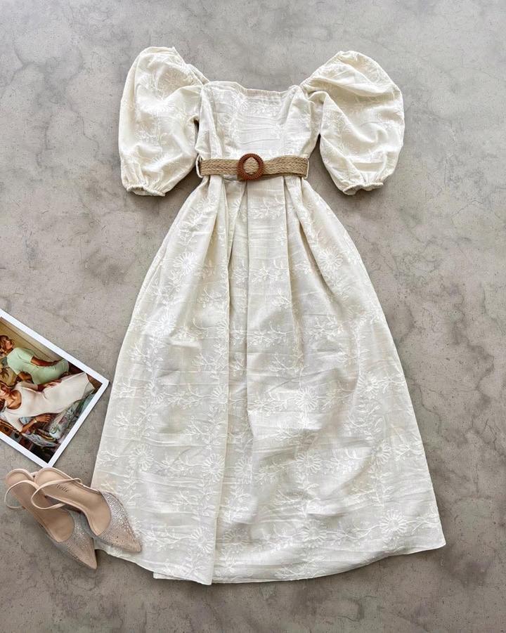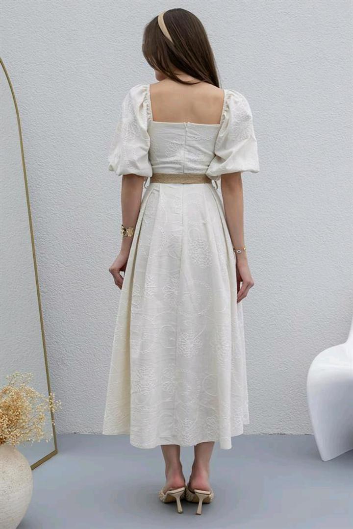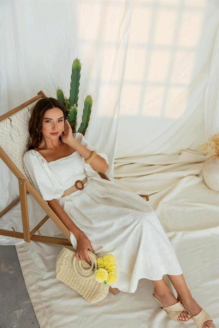 Элегантное платье ELISA выполнено из натурального хлопка с изысканной вышивкой. Модель отличается объёмными рукавами-фонариками, квадратным вырезом и акцентной талией с текстильным поясом. Длина — миди, с пышной юбкой, создающей женственный и утончённый образ. Платье идеально подойдёт для торжеств, фотосессий или стильных ппрогулок. В комплекте соломенный плетёный пояс. Размер 42-44 М. Было надето на пару часов. Состояние ИДЕАЛЬНОЕ!! ТОРГ уместен. Производство TURKIYE Артикул: 301971