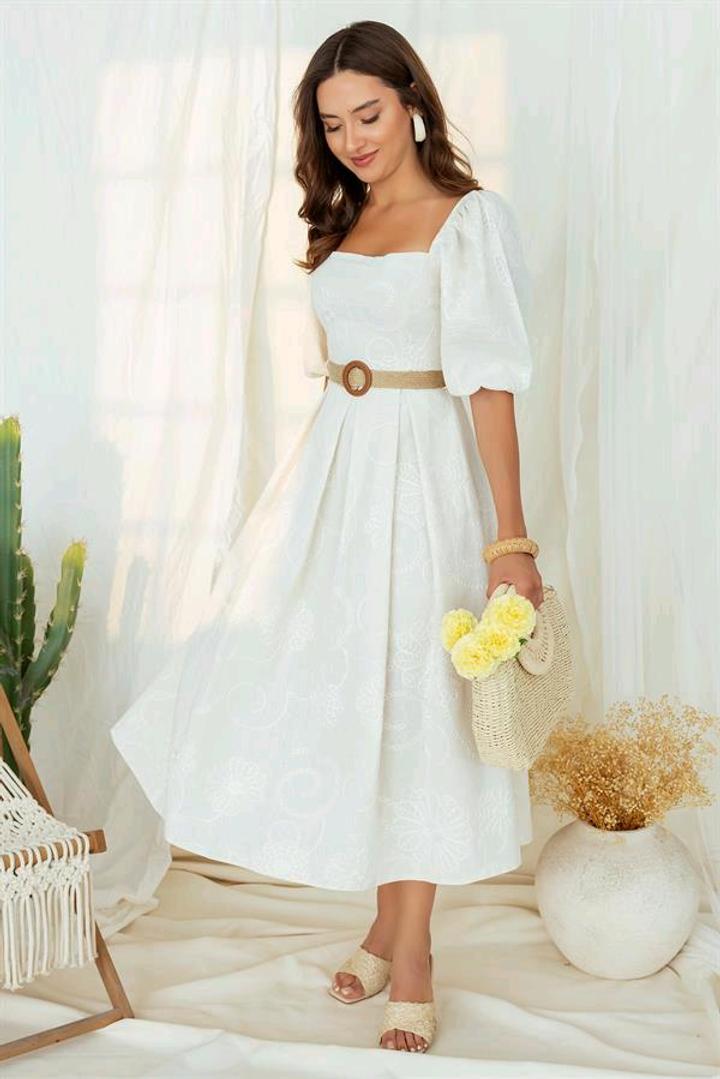 Элегантное платье из натурального 100% хлопка с вышивкойS/M