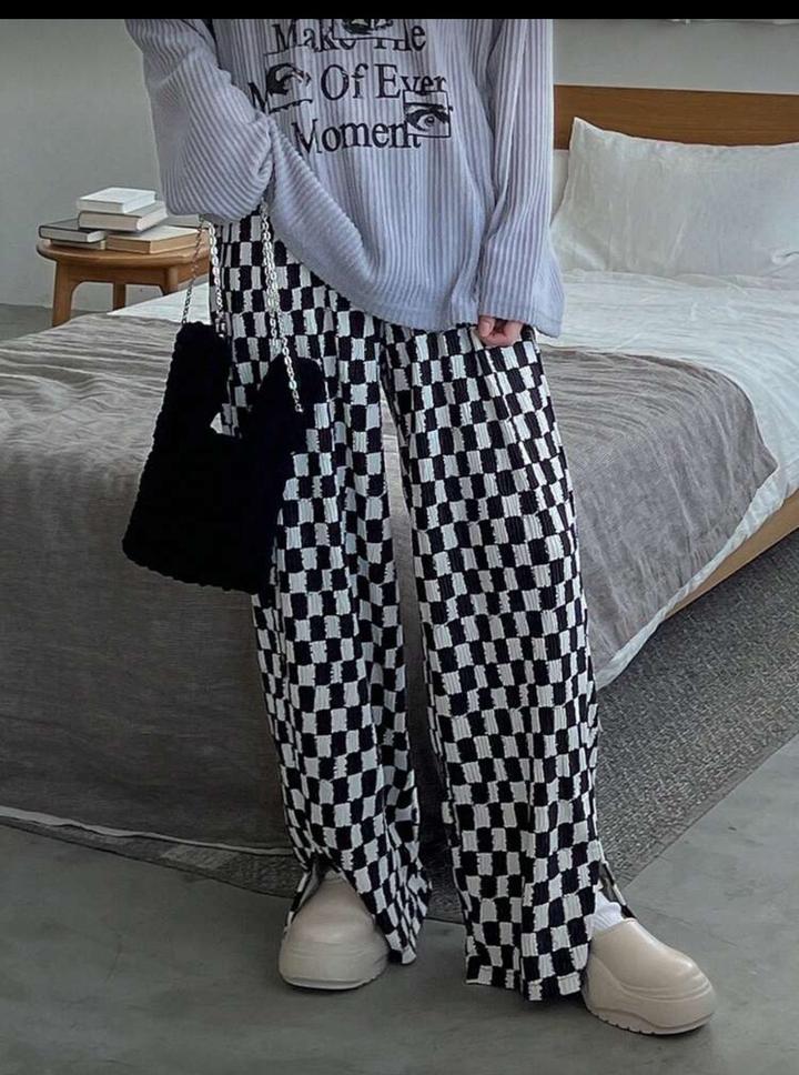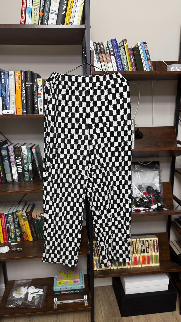 Я люблю шахматы) ♟️ И оч хотела эти брюки) Их классно носить как с белыми, так и с черными Лонгами) я сверху ещё кожанку добавляла) вообще классно было) Оч тактильно приятный к телу. Продаю потому что мне надо стать серьезнее. Артикул: 302218