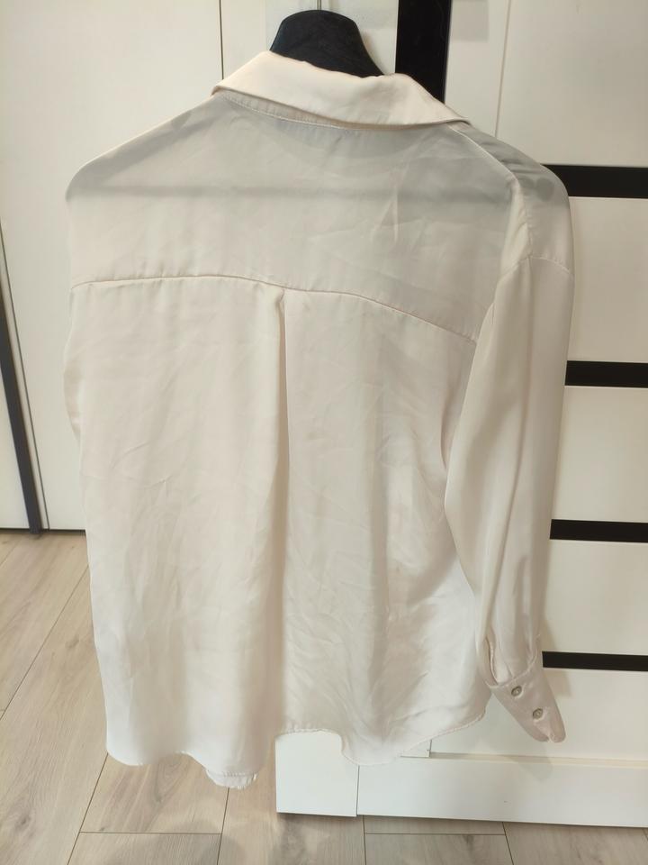 Белая рубашка Зара из атласа. Состояние хорошее. Пуговицы в виде перламутра. Размер С Артикул: 302573