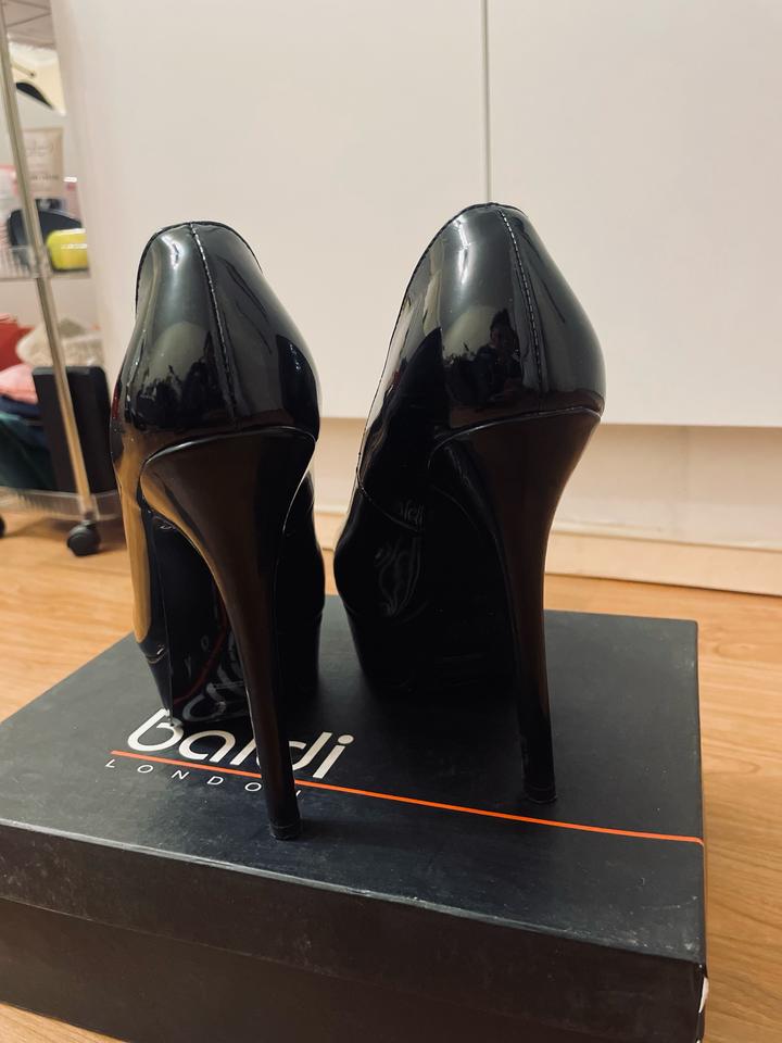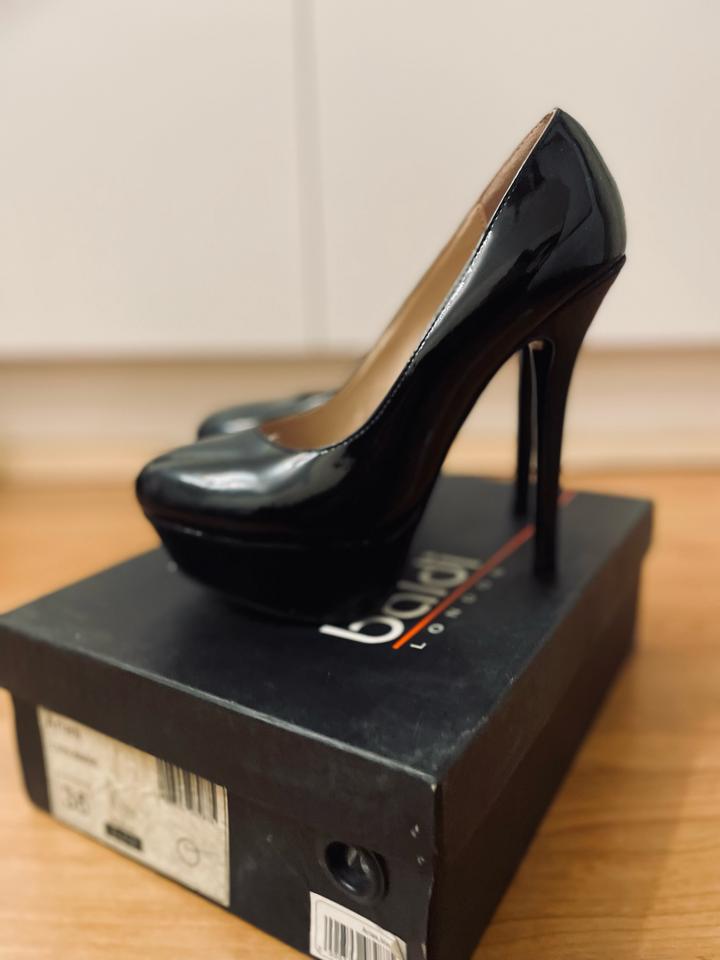 Туфли на высоком каблуке от Baldi (London) Черные, лакированные. Идут на размер 36. Носились на выход один раз, на выпускной) Есть проблема со стелькой на правой туфельке (отклеелась, приклеили обратно), но никак не влияет на носку. Не смотря на такой каблук, очень-очень удобные оказались туфли. Эффектные. Отдаю за символическую цену<3 Артикул: 302971