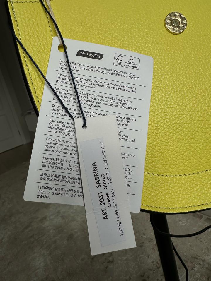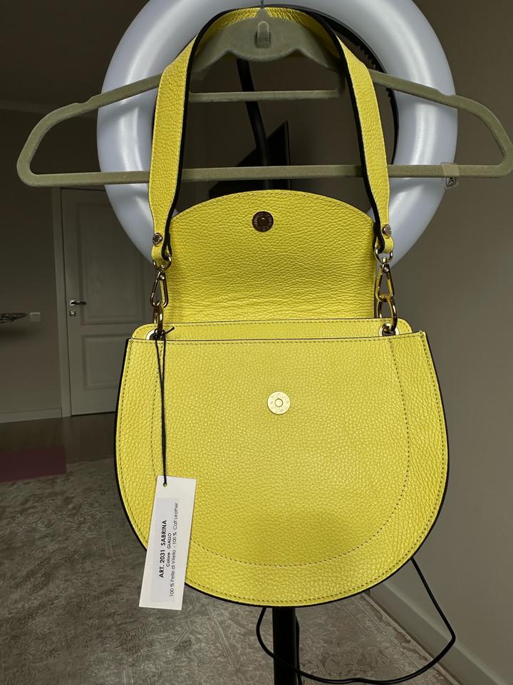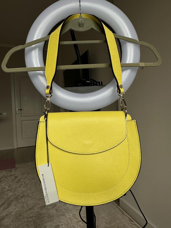 Продам сумку женскую бренд ROBERTA GANDOLFi натуральная телячья кожа, очень мягкая, приятная на ощупь. Удобно носить на плече, ремешок на режет плечо, легкая. Длина сумки -25см Высота -22 см Высота вместе с ремешком 58 см Состояние: новая Цвет: лимонный Бирки имеются Производство Италия, заказано на официальном сайте Артикул: 303016