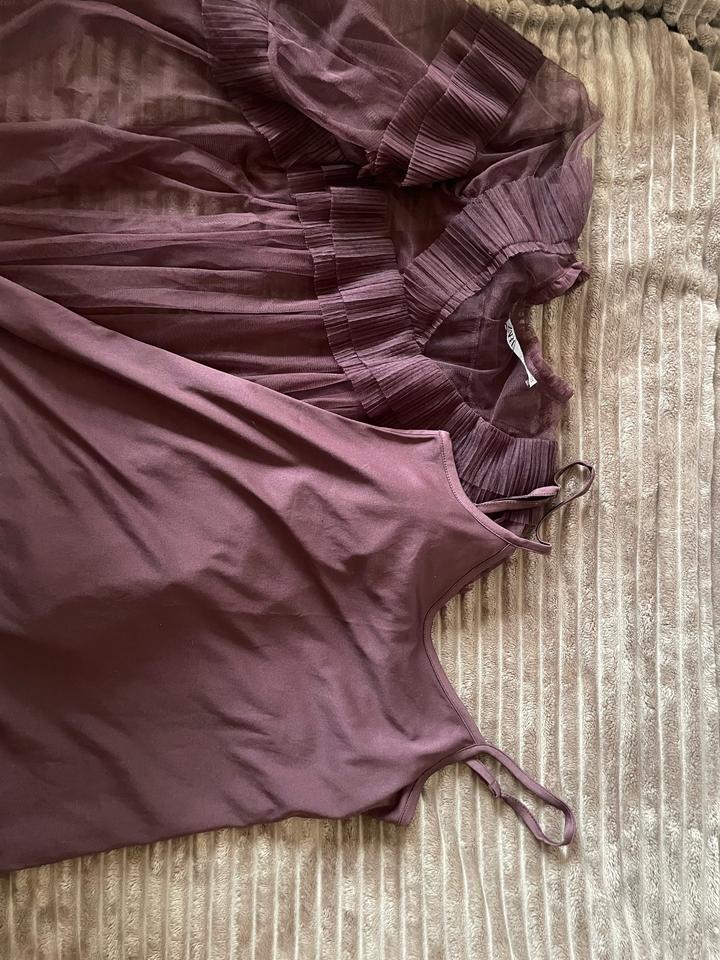 Платье из тюля с рюшами Оно идёт с комбинацией, которое можно носить отдельно тоже. Красивое, в практически новом состоянии. Цвет бордовый, винный. На размер XS-S. Символическая цена. Артикул: 303116