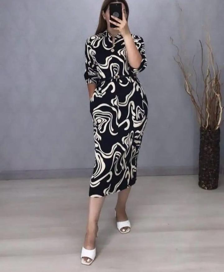 Материал лёгкий, струящийся, по ощущениям — как шёлк: гладкий и слегка скользящий. Рукава 3/4, воротник-стойка, спереди аккуратная золотистая молния. В комплекте — пояс в тон, подчёркивающий талию. Надевалось всего один раз на торжество. Состояние идеальное — как новое. Артикул: 303947