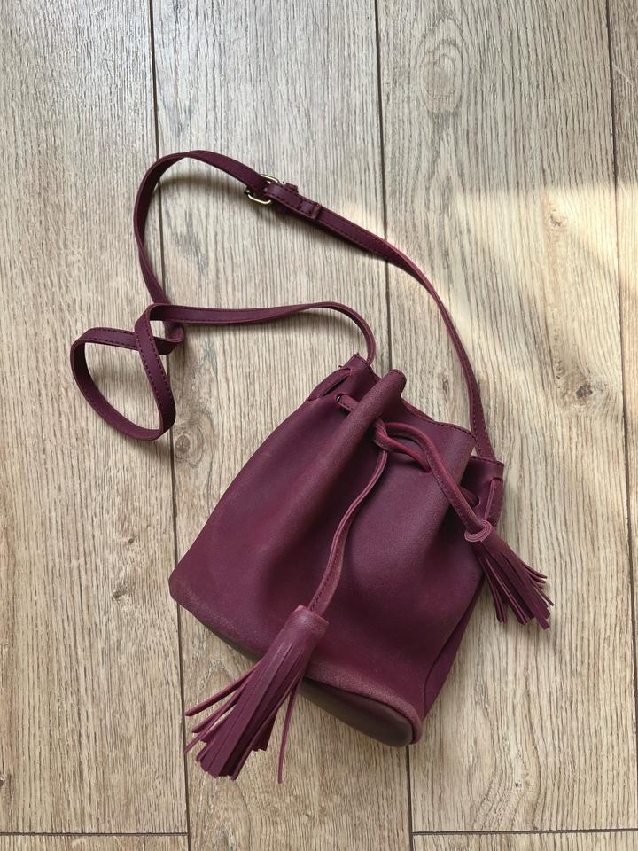 Сумочка хобо бордовая, куплена в винтажке, возможно натуральная кожа, небольшая Артикул: 304175