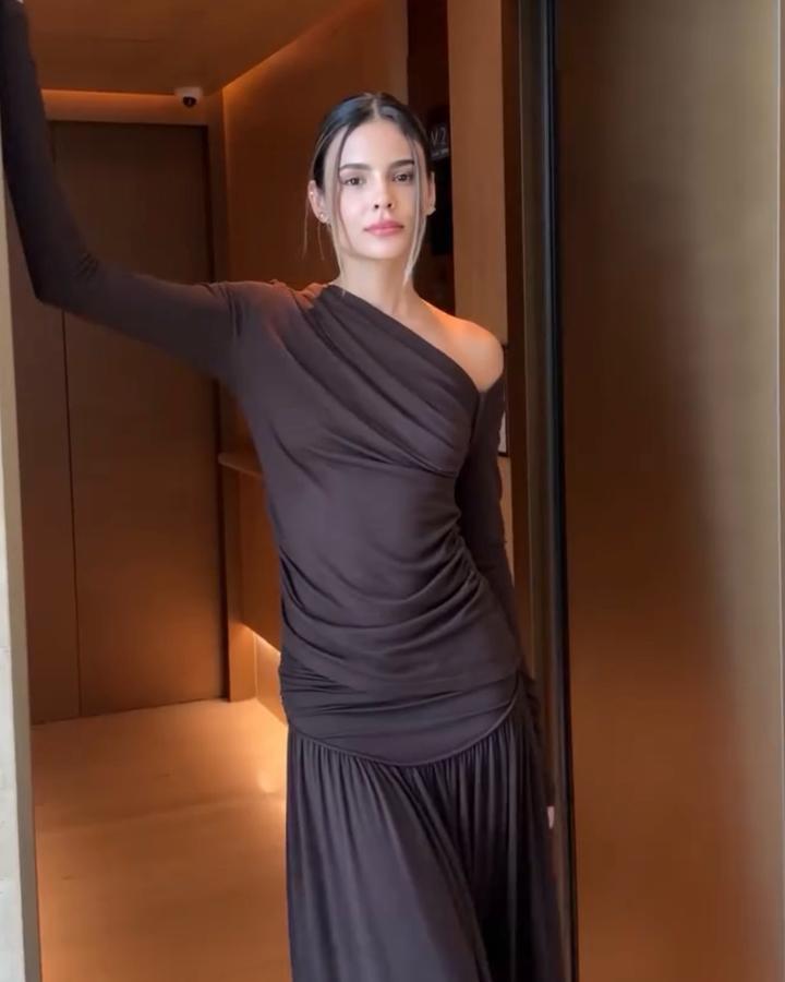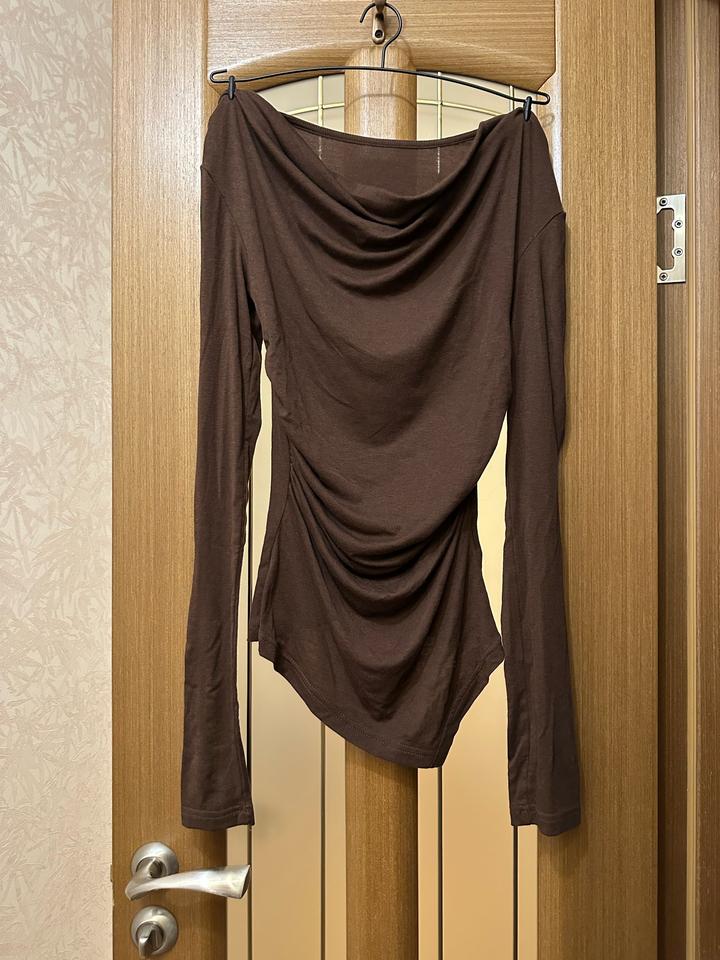 🛍️Трендовый лонг Nora Абсолютно новый На теле невесомый, ткань тонкая Цвет горький шоколад 🍫 Можно носить открыв одно плечо либо два плеча Артикул: 306066