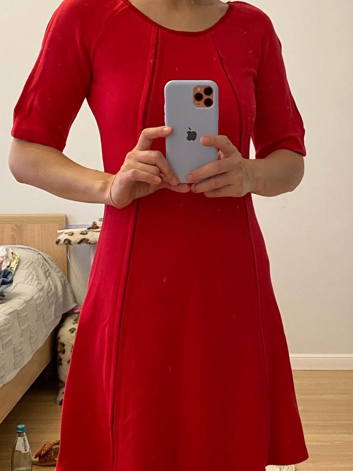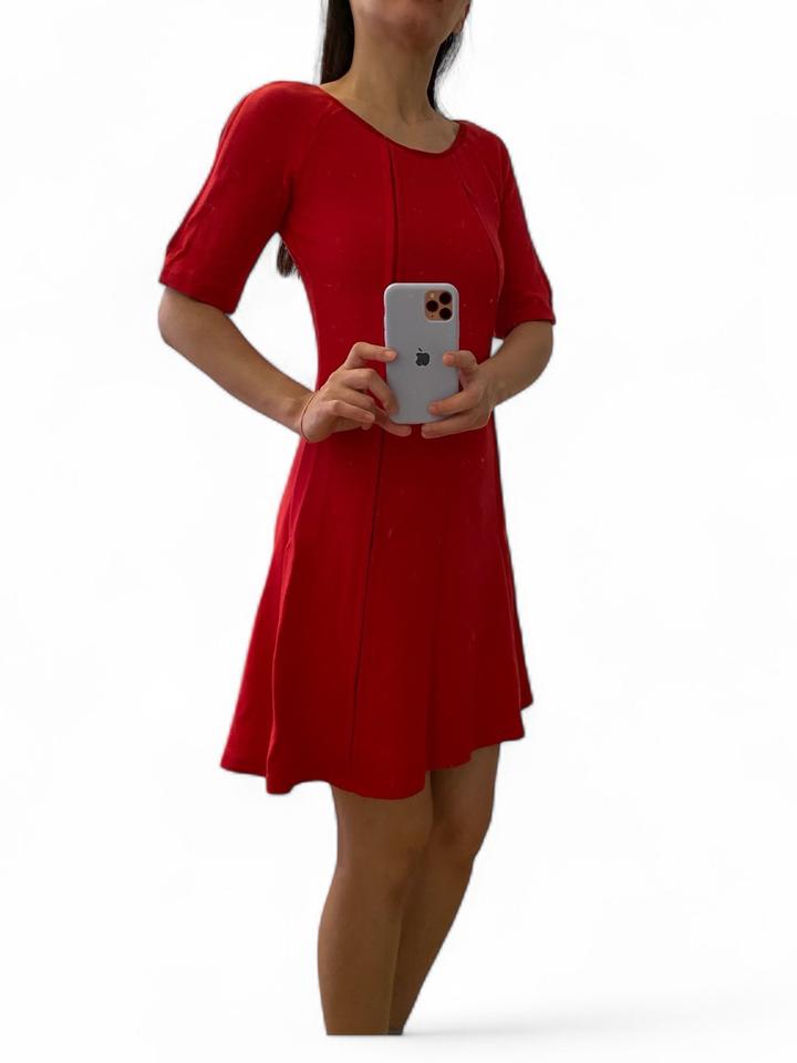 Красивое платье Pennyblack с укороченными рукавами и расклешенной юбкой. Платье имеет лаконичный дизайн, без лишних декоративных элементов. Материал плотный текстиль, с добавлением эластана для комфортной посадки по фигуре. Подходит как для повседневной носки, так и для более формальных случаев. Размер XS, но подойдет и на S. Артикул: 306475