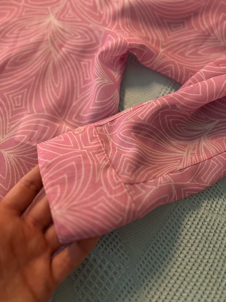 Розовый с принтом Имеется майка Материал шифон Носила на мероприятия раз 6 Деликатная стирка Глажка утюгом с сухим паром Артикул: 306787