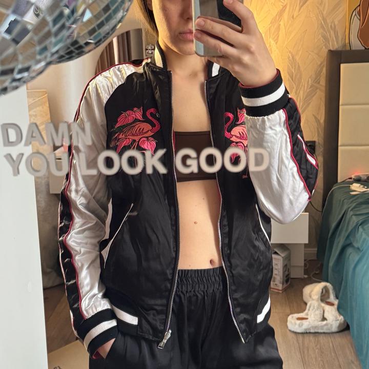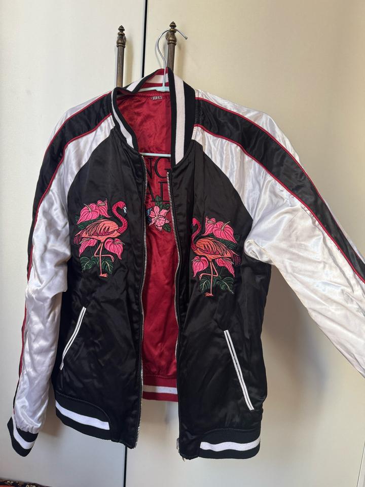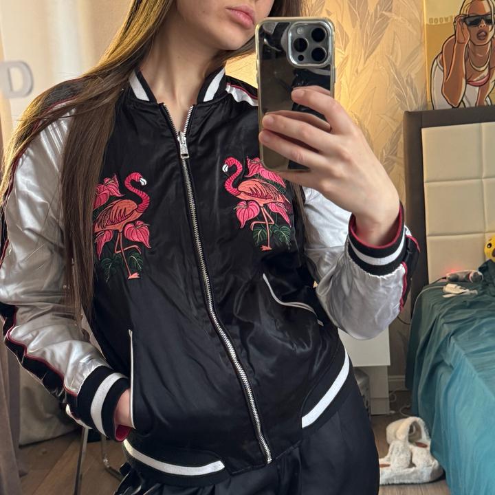 Мягкий приятный бомбер носится на две стороны Есть небольшие затяжки в разных местах сделанные кошачьими лапками , но их не видно особо Подойдет на s или на xs будет свободно Артикул: 306988