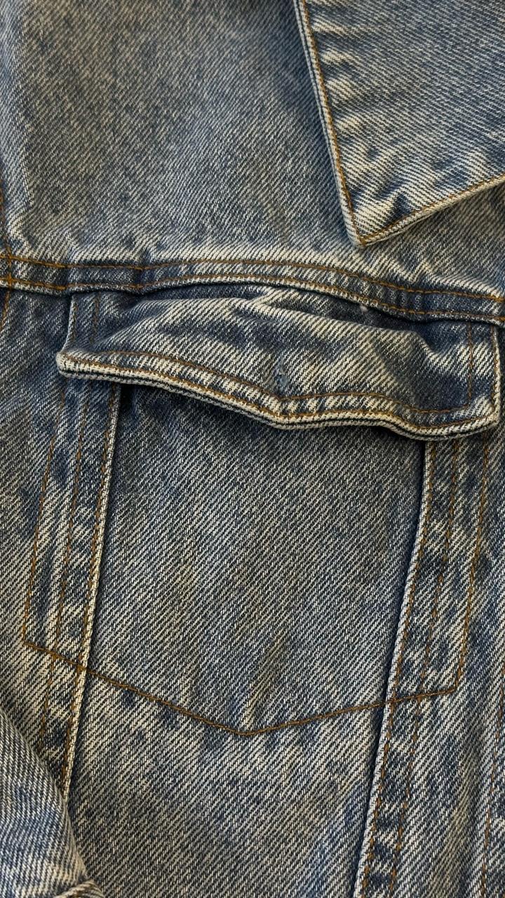 Классная джинсовка на 130 см ребенка, хлопок 100%, потеряли пуговку на кармашке, а так в идеальном состоянии Артикул: 307001