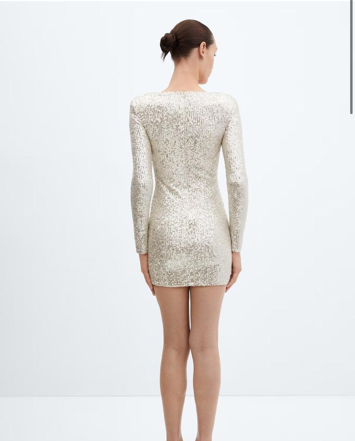 Роскошное мини-платье с длинными рукавами, полностью расшитое сияющими пайетками. Идеальный вариант для вечеринок, праздничных мероприятий и особых случаев. Лаконичный крой подчеркивает фигуру, а благородный светлый оттенок делает образ утончённым и ярким одновременно. • Материал: плотная основа, покрытая пайетками,полиэстер • Длина: мини • Рукав: длинный • Цвет: шампань/металлик Артикул: 307270