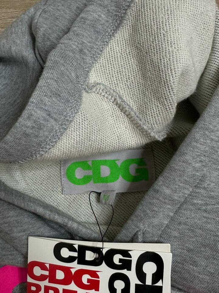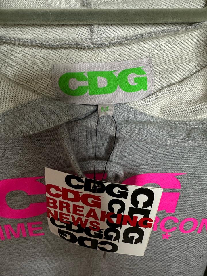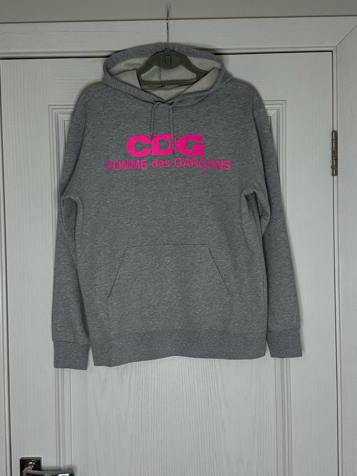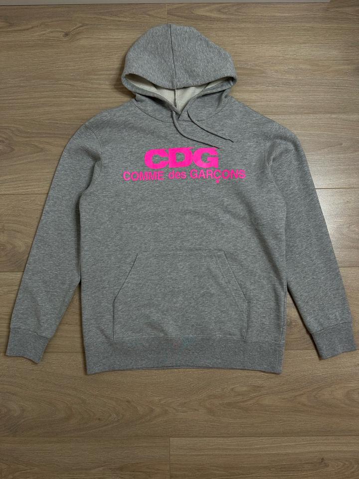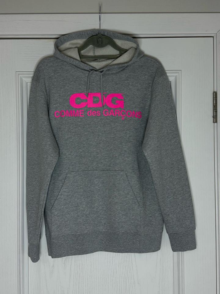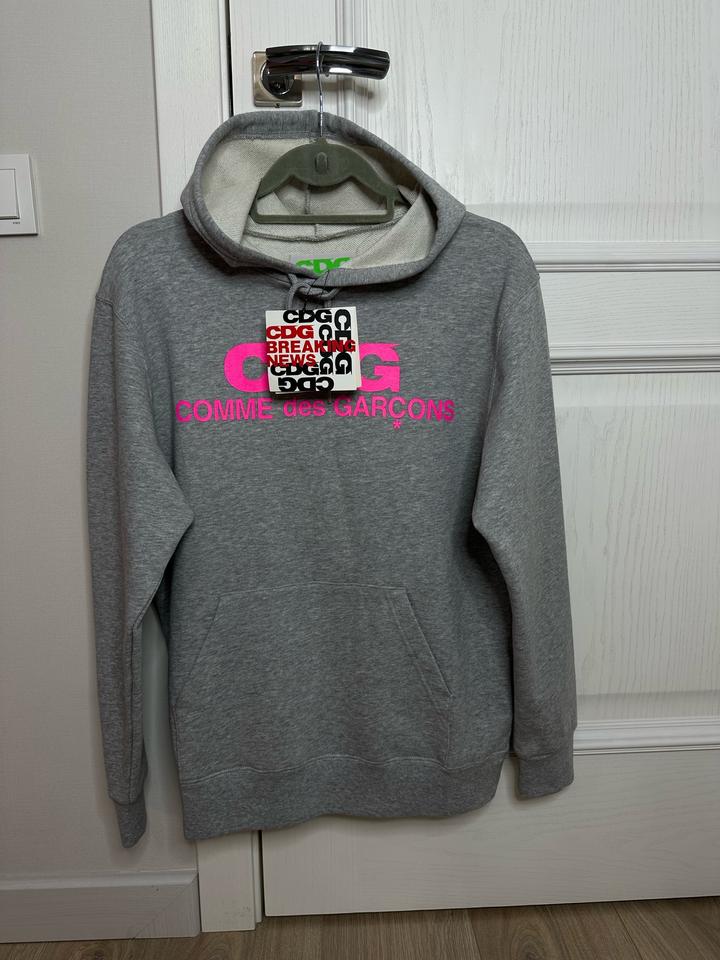 Продам свитшот японского нишевого бренда «Comme des Garsons», серого цвета с розовым логотипом на груди, из капсульной коллекции, дизайнерская вещь. Ткань очень мягкая, приятная к телу, качество превосходное, дышащая, легкая, не скатывается. Прослужит очень долго! Сидит на фигуре идеально. Состав: 60% хлопок, 40% полиэстер. Не растягивается и не отвисает. Имеется капюшон и карман спереди. Артикул: 307335