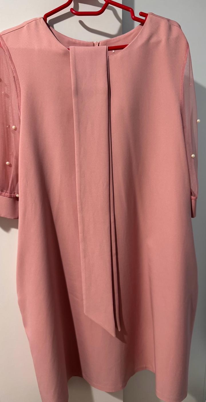 Пыльно розового цвета платье, производство Турция. Без этикетки. Было надето один раз. Имеется пояс длинный, того же цвета. Подойдет на размер 46-48 Артикул: 307651