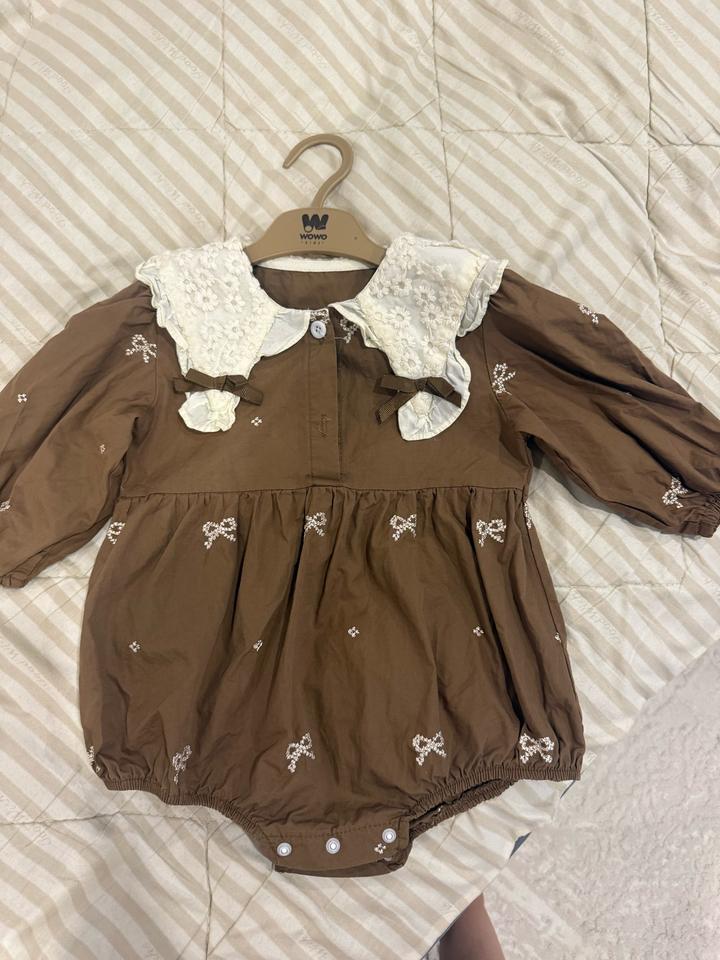 Надевали пару раз на фотосессии. Размер: 90 см, но маломерит на 80 см. (Мы надевали, даже когда были меньше 80 см, где то в 6-7 месяцев, зависит от веса и роста ребенка). Артикул: 308127