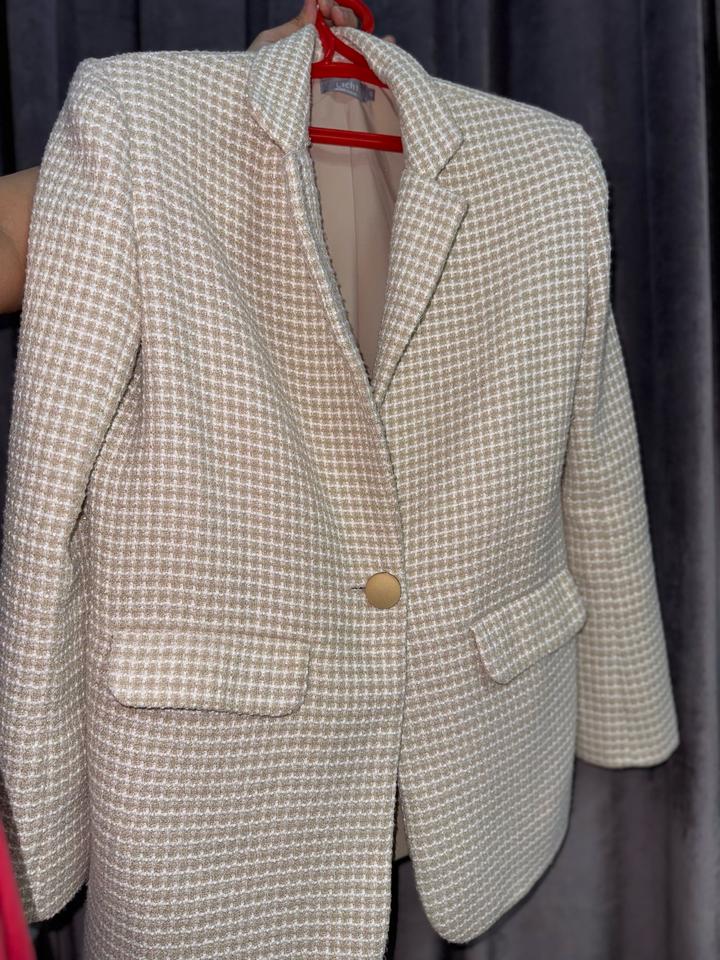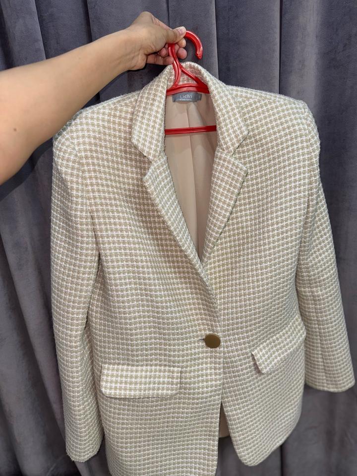 Твидовый теплый пиджак молочного цвета, от Lichi. Надевала 2-3 раза. Артикул: 308488
