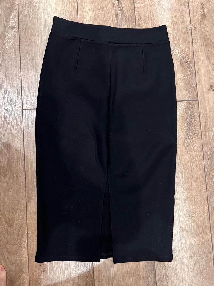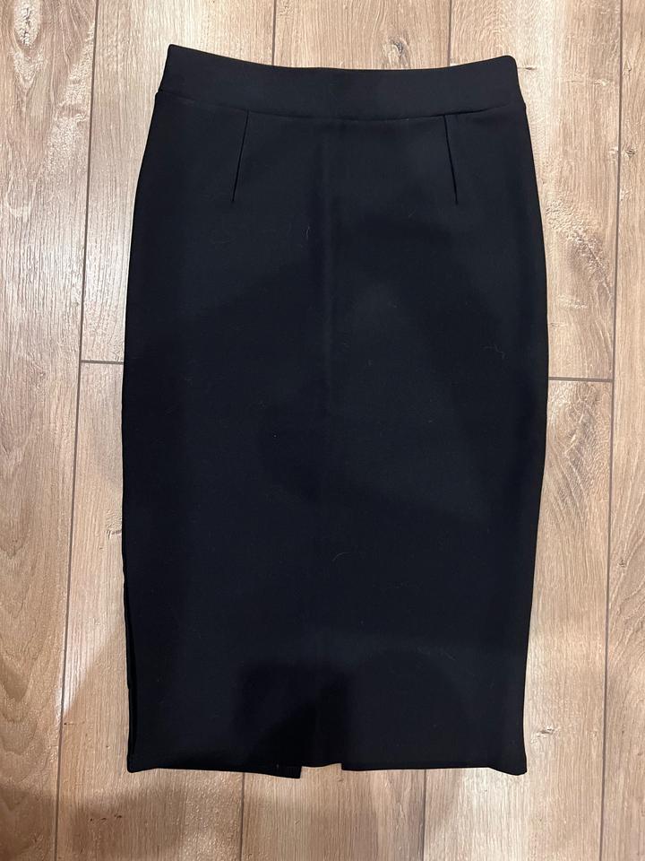 Продам черную обтягивающую юбку, размер s. Длина ниже колена. На рост 160-165 см. Сзади есть небольшой разрез. Артикул: 308933
