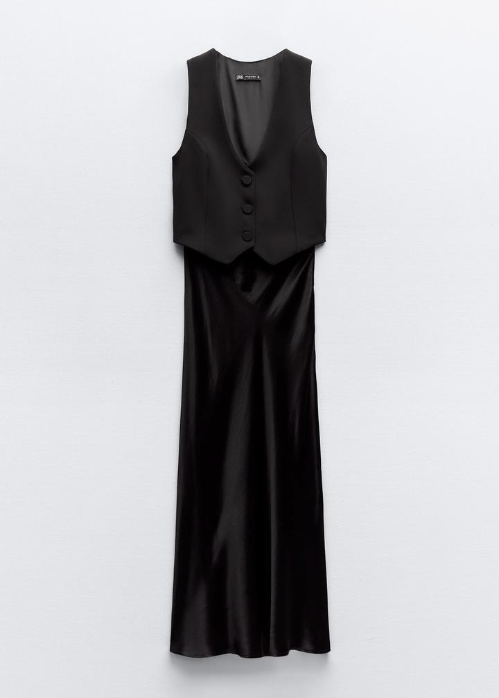 Атласное платье-жилет, новое с этикеткой, SS/M