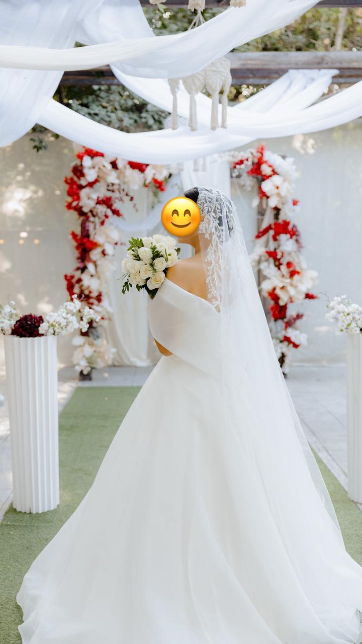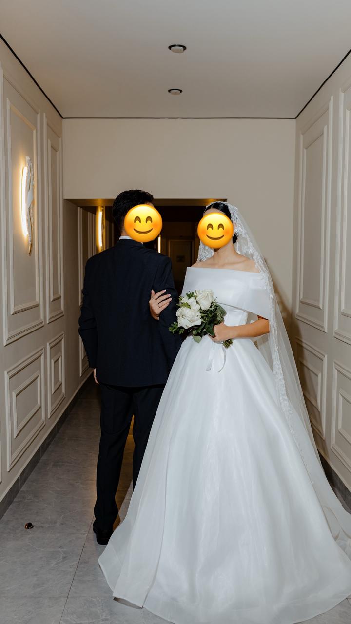 Платье размер 42-46 (корсетный основа), мой рост 173 см есть кольцо 4, одевалась 1 раз. Очень легкое минималистичное платье 🥰 сзади есть не большой шлейф Артикул: 312740