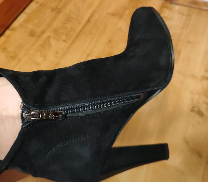 Продам шикарные батильоны от бренда Respect, состояние новых обуты чесно один раз (машина-помещение), нет следов носки вообще, с пыльником и коробкой, запасными набойками! Выполнены из 100% замши внешней отделки, и 100% кожи внутренней отделки! Очень удобные, невысокий каблучок...на ножке смотрятся очень красиво, по ощущениям на ножке невесомы! Брендированая фурнитура Respect! В глубоком чёрном цвете! Универсальны в своём сочетании со всевозможной одеждой! Маркировка 38 на 37/38 Артикул: 313983