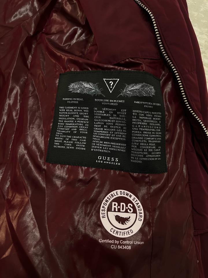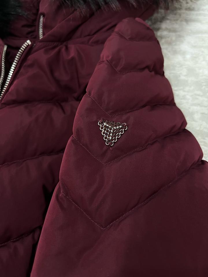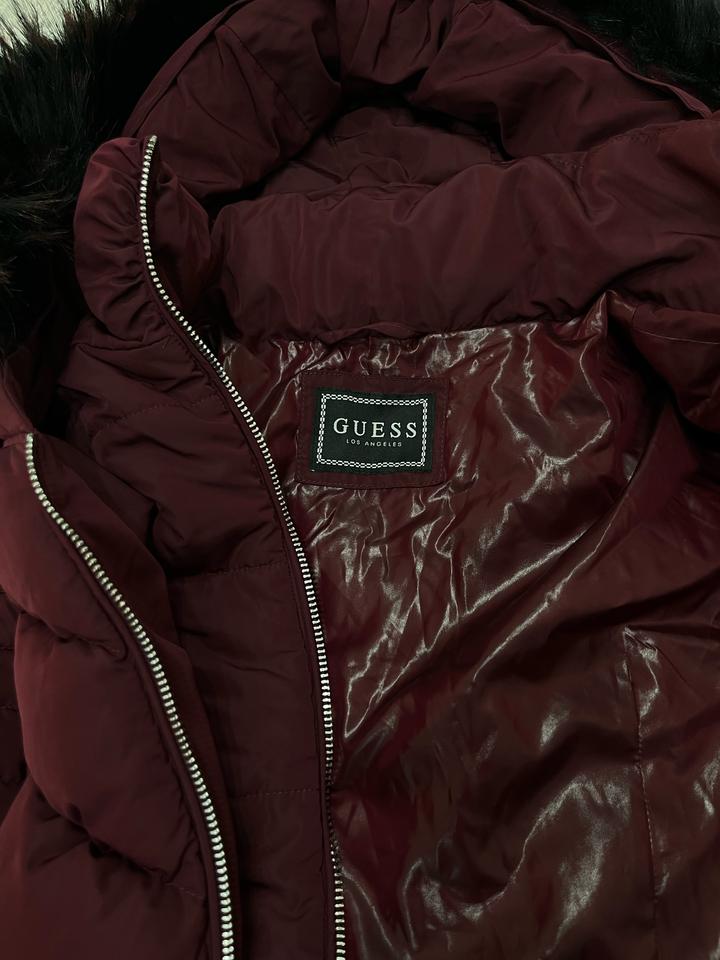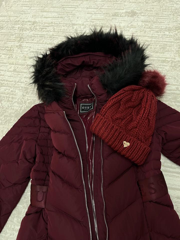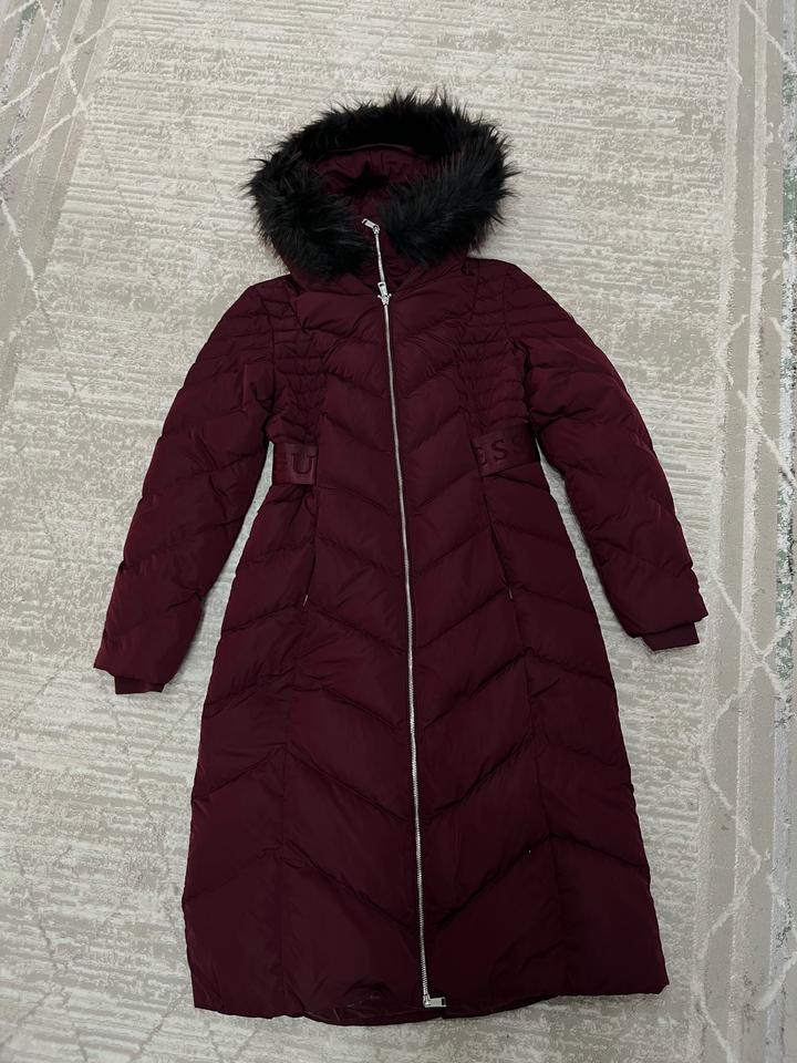 Зимняя куртка от guess. Оригинал, покупала в Достык плазе. Почти новая. Шапка в подарок.Пуховик утепленный пухом и пером выполнен из прочного текстиля. Приталенный крой. Детали: застежка на молнию, 2 кармана, фиксированный капюшон, съемный искусственный мех. В бордовом цвете ! Шикарное качество!!! Артикул: 314410
