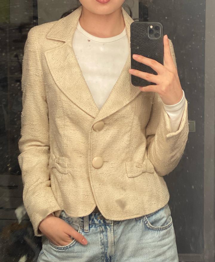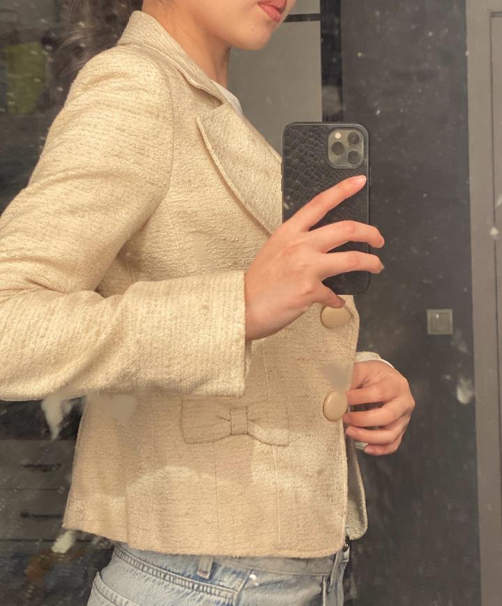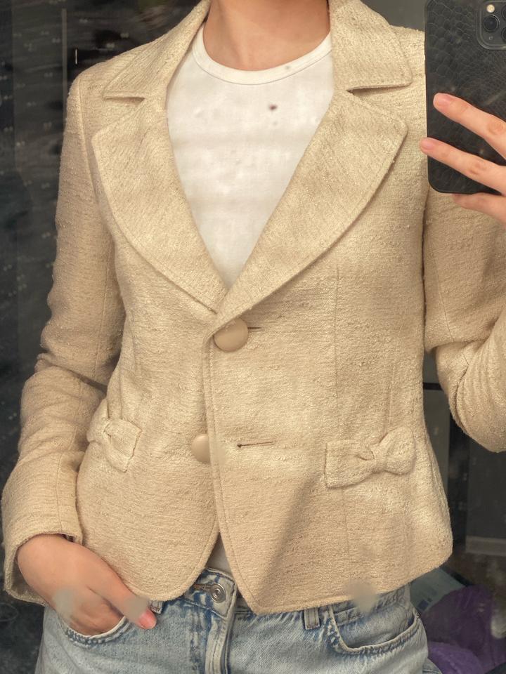 Твидовый жакет. Качества очень хорошая. Цвет: кремовый, бежевый. Размер: ХS-S Артикул: 315211