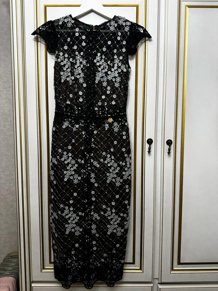 Темно коричневое платье с голубыми цветочками и черным кружевом, так же имеются золотистые плетения. В идеальном состоянии, использовалось один раз на свадьбу Артикул: 316338