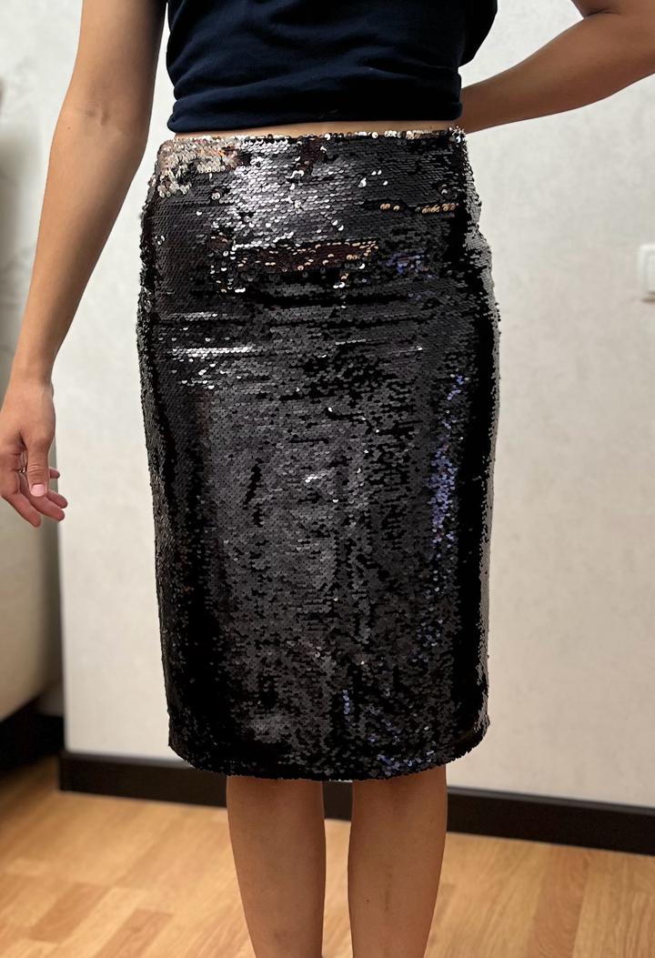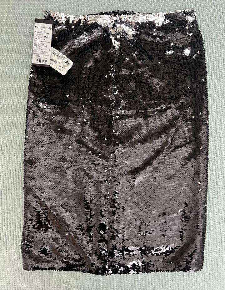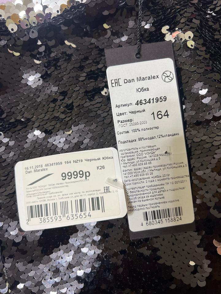 Черная юбка из 100% полиэстера, подклад 88% модал и 12% спандекс. Новая юбка с биркой. Артикул: 317843
