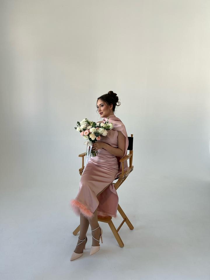 Продам свое платье, размер S, было сшито на заказ у дизайнера за 140.000, итальянская ткань, надела один раз, платье + палантин. Перья съемные, стирать вручную. Артикул: 317872