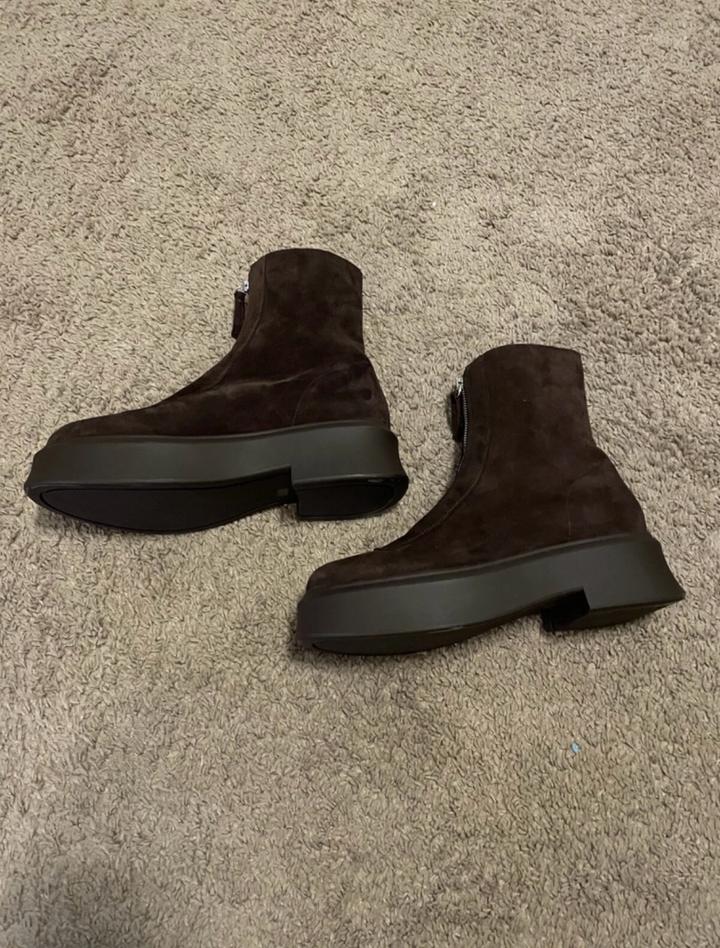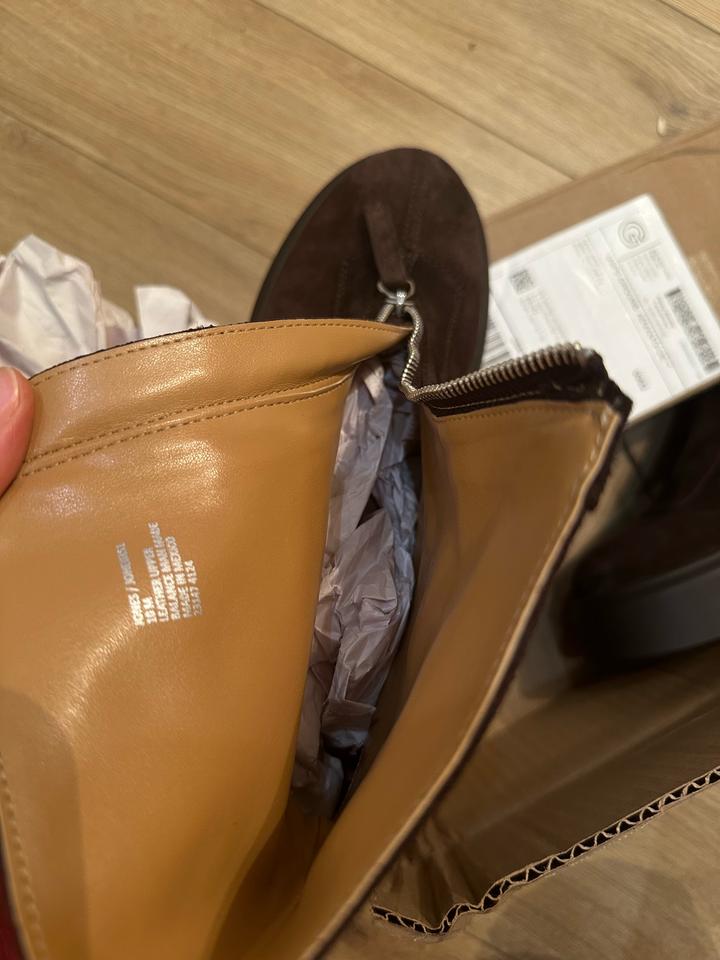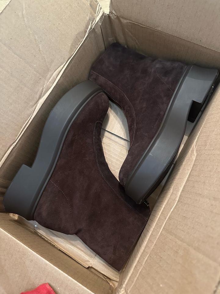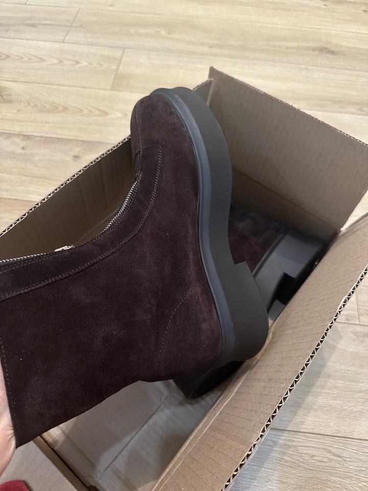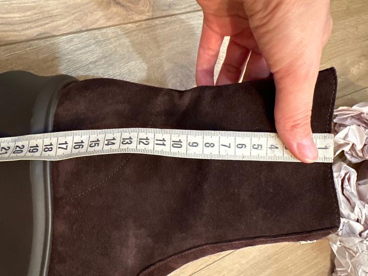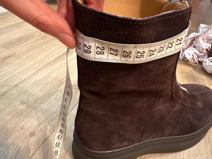Крутые новые Сапоги . На замочке Натуральная замша. Заказала из США, коробки нету. Мне размер не подошел. На стопу 26 см идут. . P.S.: перезаказала себе на размер меньше. Ношу в минус 5 с тонким носком. Ноги не мерзнут) Обошлись в 44800 тг с весом из сша. Артикул: 318037