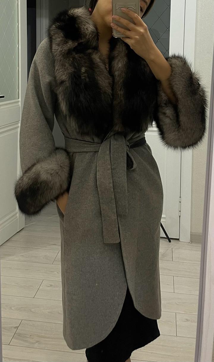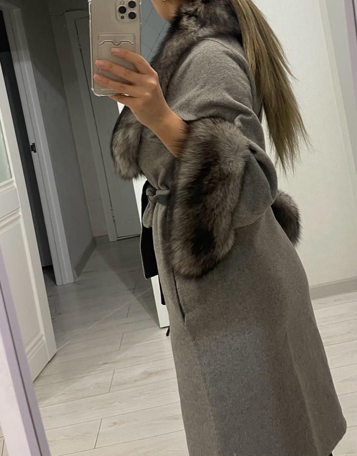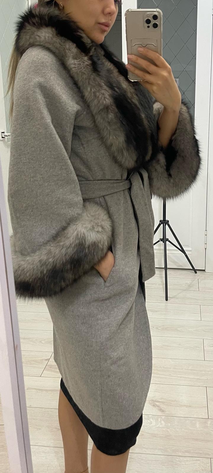 Серое пальто с мехом . Очень красиво смотрится в живую . В отличном состоянии. Размер 42-44 ( торг) Артикул: 319279