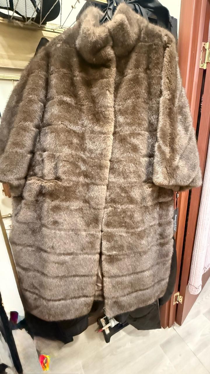 Шуба под норку, летучая мышь, ворот стойка, Выбитые полосы. Артикул: 319396