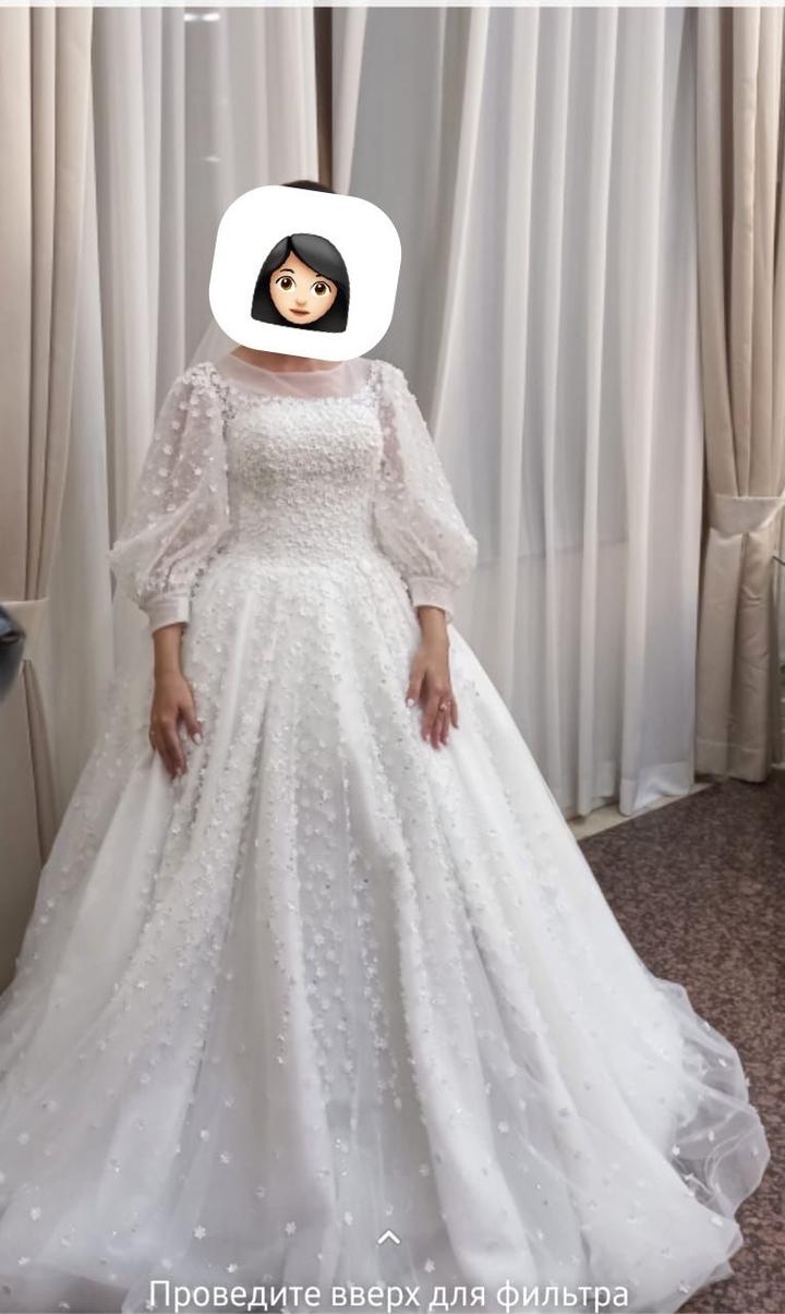 В отличном состоянии, без дефектов. После химчистки, в чехле. В комплекте идёт “ кольцо” под платье. Рукава 3/4, фонарик, пышное, обшито стразами. Регулируется за счёт корсета и завязок сзади Артикул: 319469