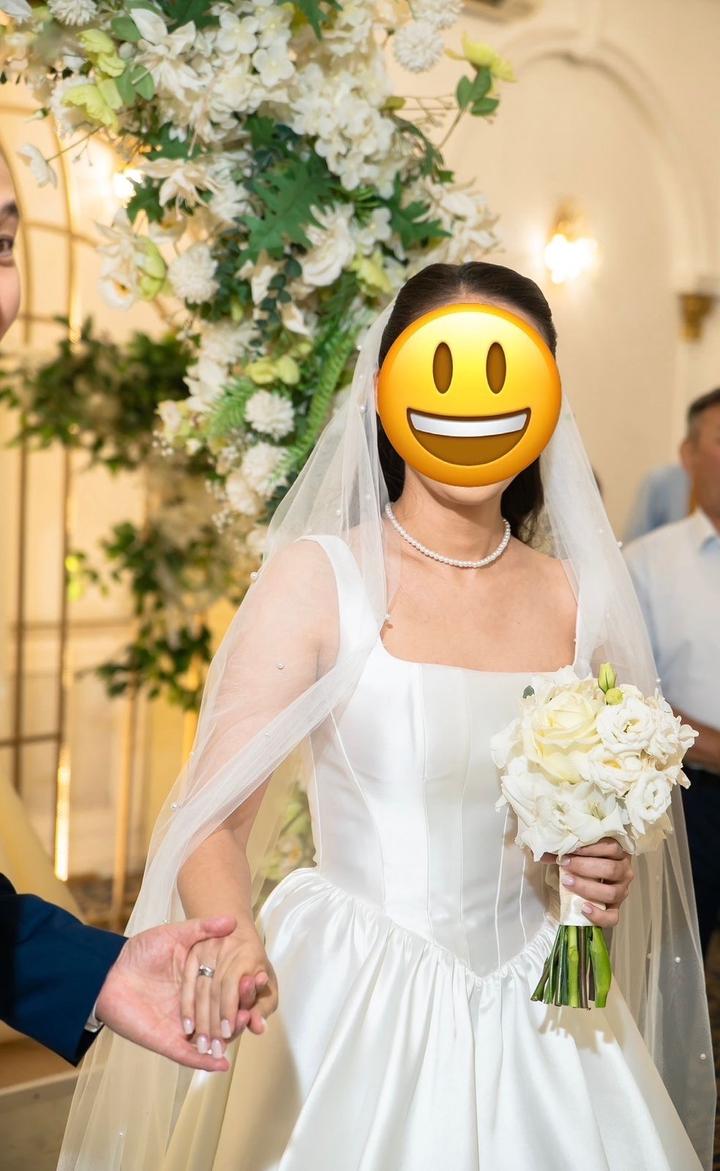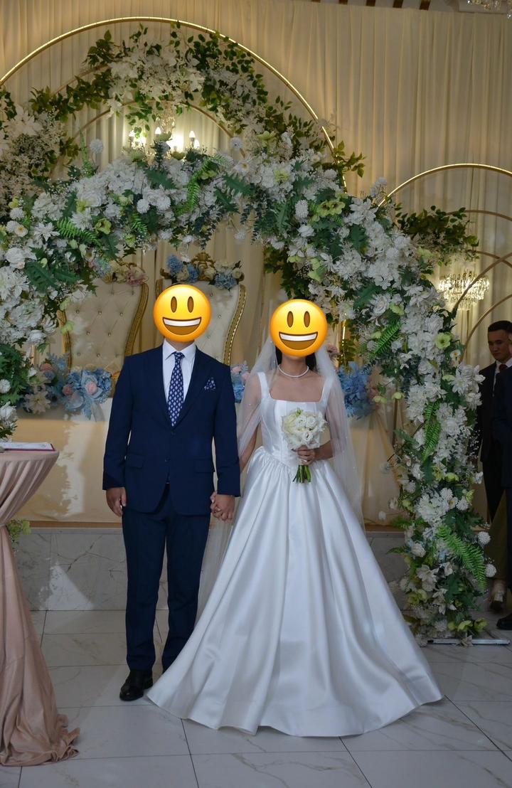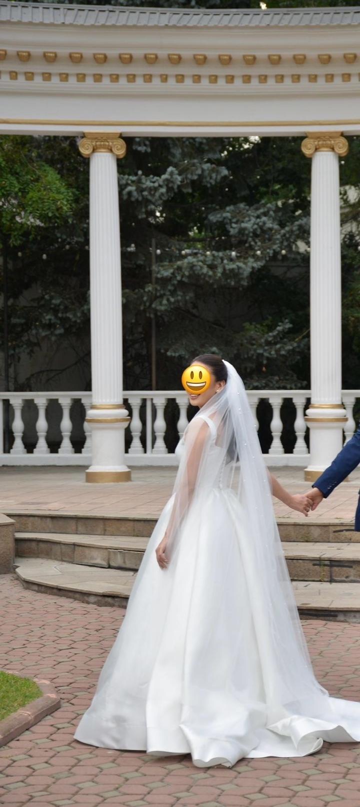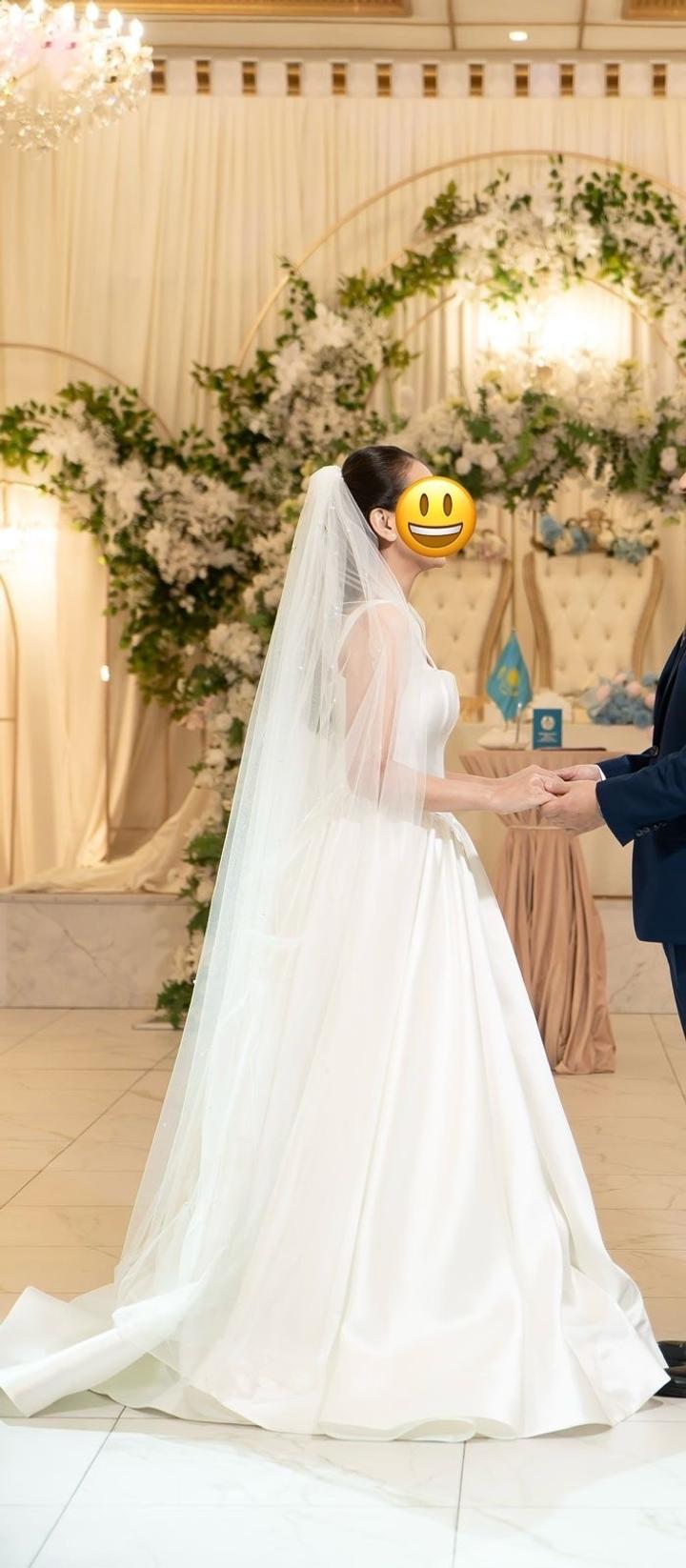 Свадебное платье премиального качества. Очень удобное, качественное. После дорогой химчистки (платье чистое и свежее). Размер 42-44. В подарок кольцо под платье. Покупала в магазине Zlatti (очень дорого). Платье выполнено из шикарного шелка Микадо. Состояние нового, одевала один раз только в ресторане. Длину и корсет не ушивала. Цена 200000 тенге, реальной покупательнице торг уместен. Артикул: 319584