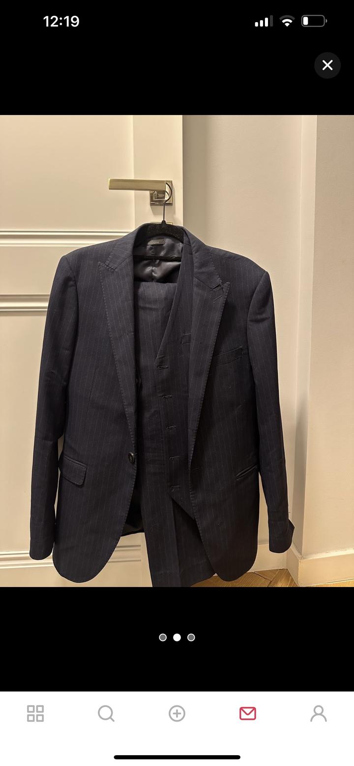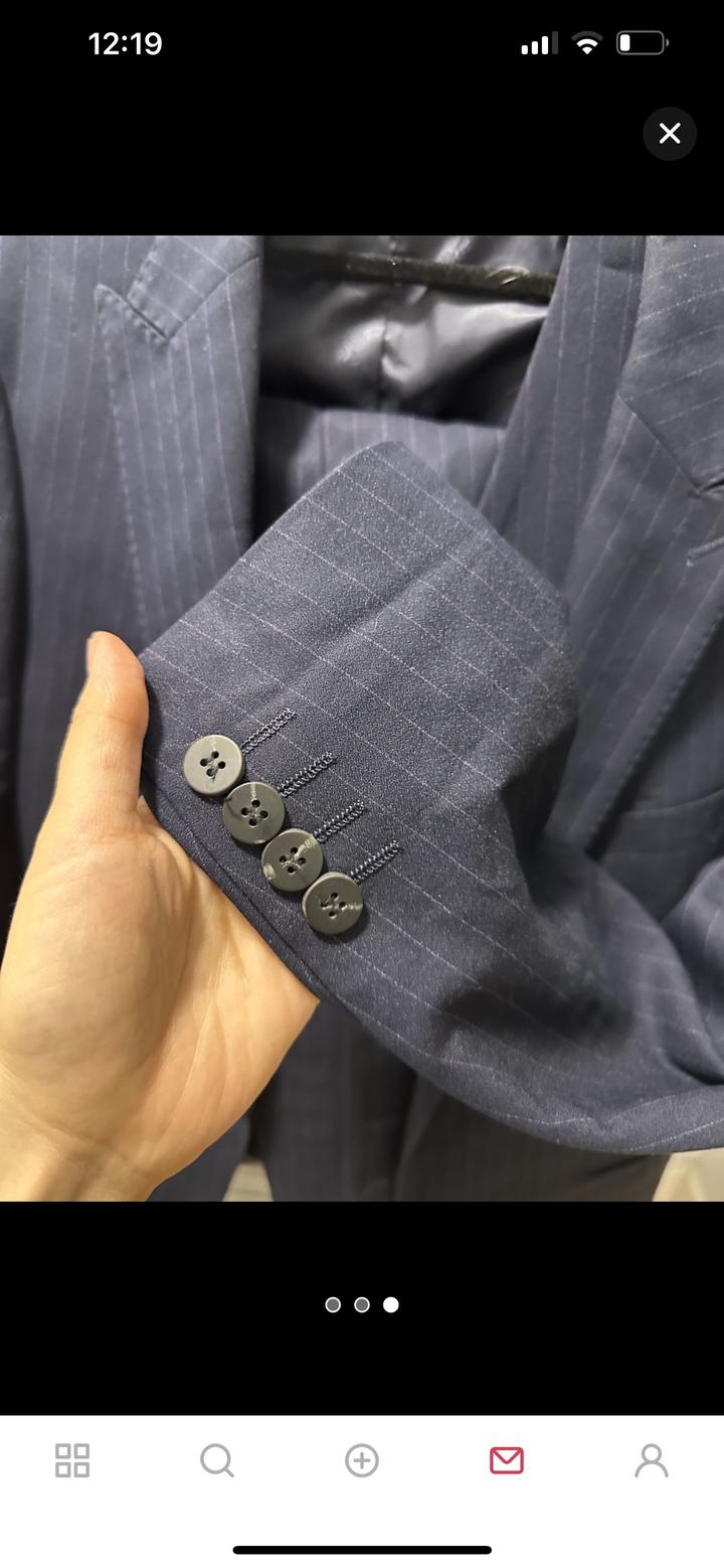 Темно синий костюм в мелкую полоску, от Казахстанского бренда Шокан) на очень худенькую девушку, покупали недавно в Гардеробе, но ошиблись с размерами Артикул: 320212