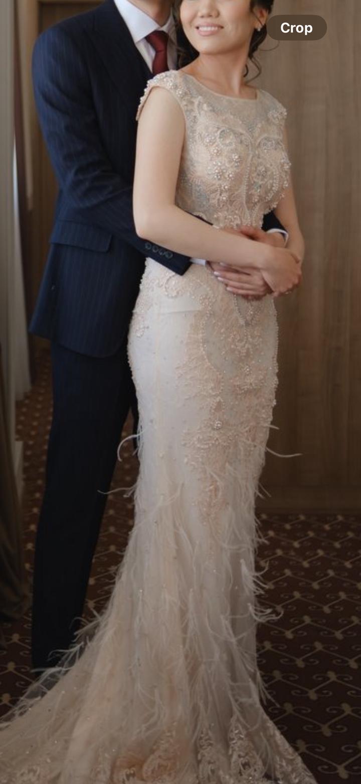 Продам вечернее платье нежно персикового цвета. Платье с красивой вышивкой и перьями на юбке. Подойдет на размер 44-46 (s,m) и рост от 165 см с каблуком. Артикул: 320495