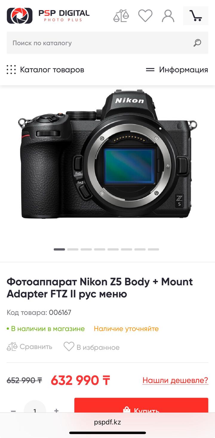 Nikon Z5 — это надежная, универсальная и удобная камера, которая идеально подойдет как для серьезного хобби, так и для профессионального использования. Совместима с широкой линейкой высококачественных объективов NIKKOR Z. Камера в отличном состоянии, покупала за 1,5 млн вместе с объективом и адаптером. Все полностью целое и рабочее, есть незначительные потертости за время использования. В комплекте есть вторая дополнительная батарея. Полную характеристику прикреплю в фото! Артикул: 320705