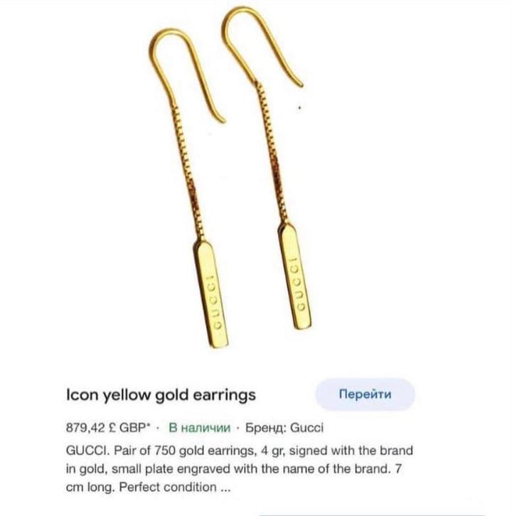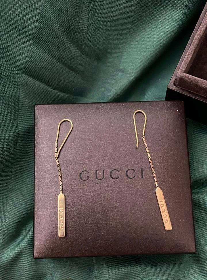 Gucci висячие серьги 750 проба 18к, желтое золото. Оригинал-