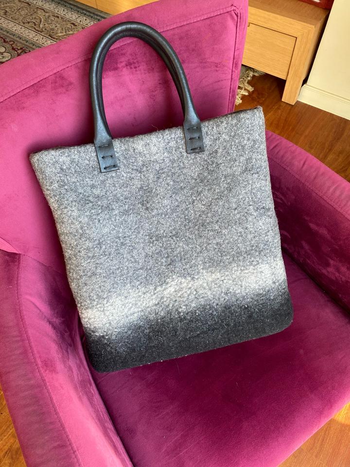 👜 Дизайнерская сумка от бренда Tumar. Стильная сумка из плотного войлока и натуральной кожи — идеальный вариант для холодного времени года 🍂❄️ Ручная работа, качество ощущается в каждой детали. ✨ Характеристики: • Высота — 38 см • Ширина — 35 см • Ширина дна — 15 см • Войлок очень плотный, держит форму • Внутри два кармана — большой и маленький (удобно для телефона и мелочей) 🆕 Сумка абсолютно новая — купила, но так и не носила. 🎨 Лаконичный дизайн в серо-чёрных тонах легко впишется в любой образ Артикул: 320771