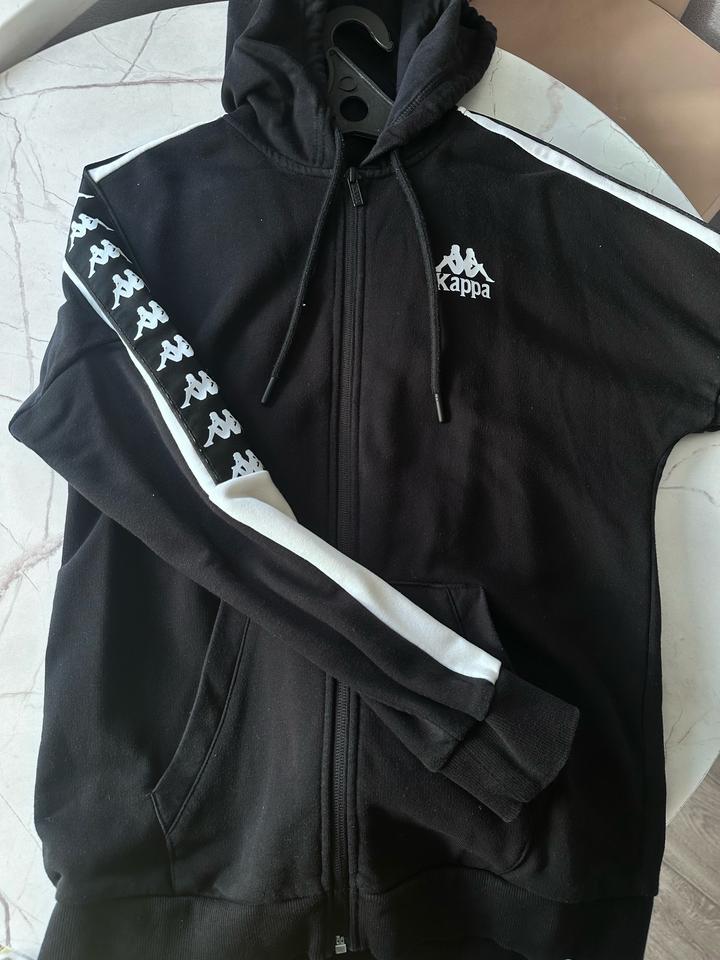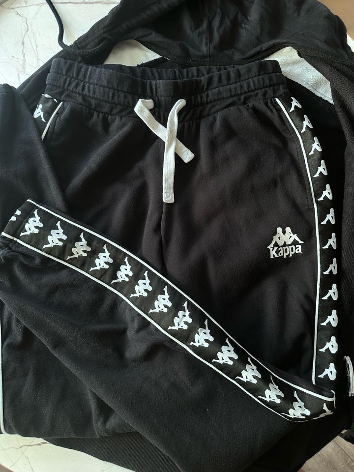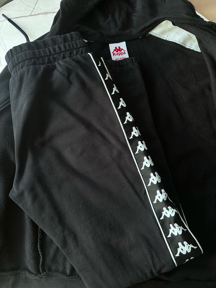 Черный костюм спортивный kappa В хорошем состоянии Если будете покупать,напишите пожалуйста,чтоб я промокод вам написала Артикул: 321493