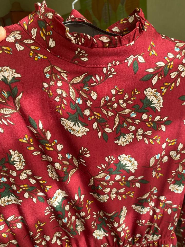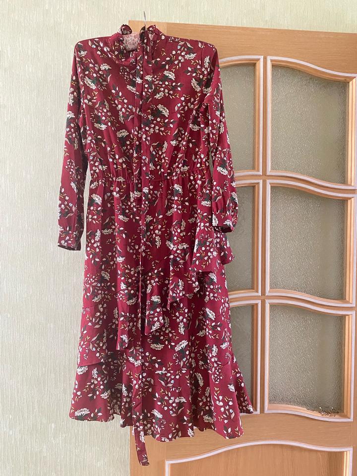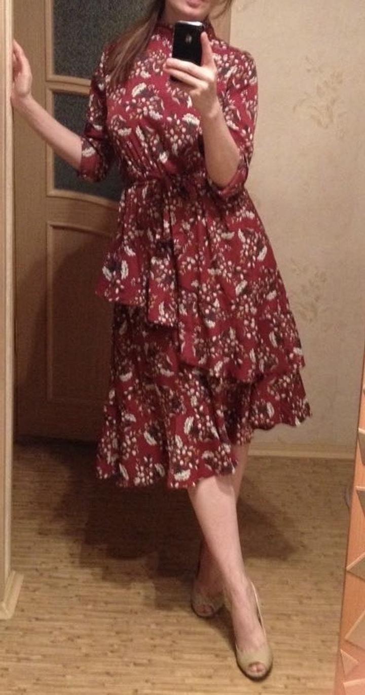 Женственное платье, воротник стойка, подол осиметрия, в области талии резинка, имеется поясок, так же вшитый подъюбник. На конец весны, начало осени и можно вечером летом. Ткань средней плотности, похож на креп шифон. Пару выходов, в отличном состоянии. Артикул: 321535