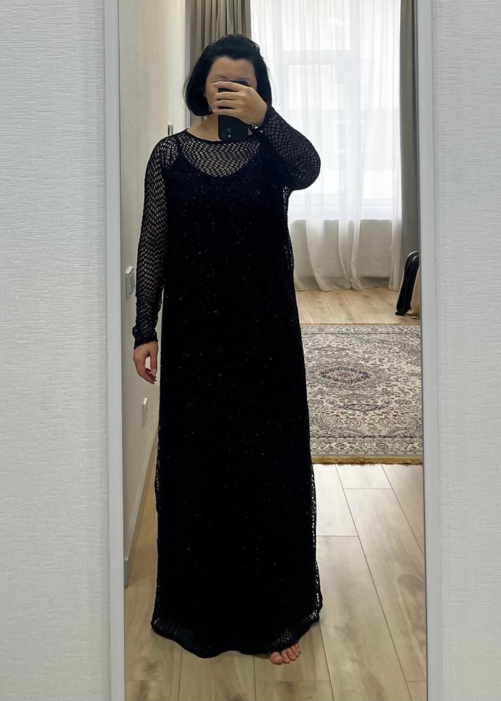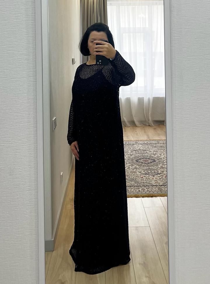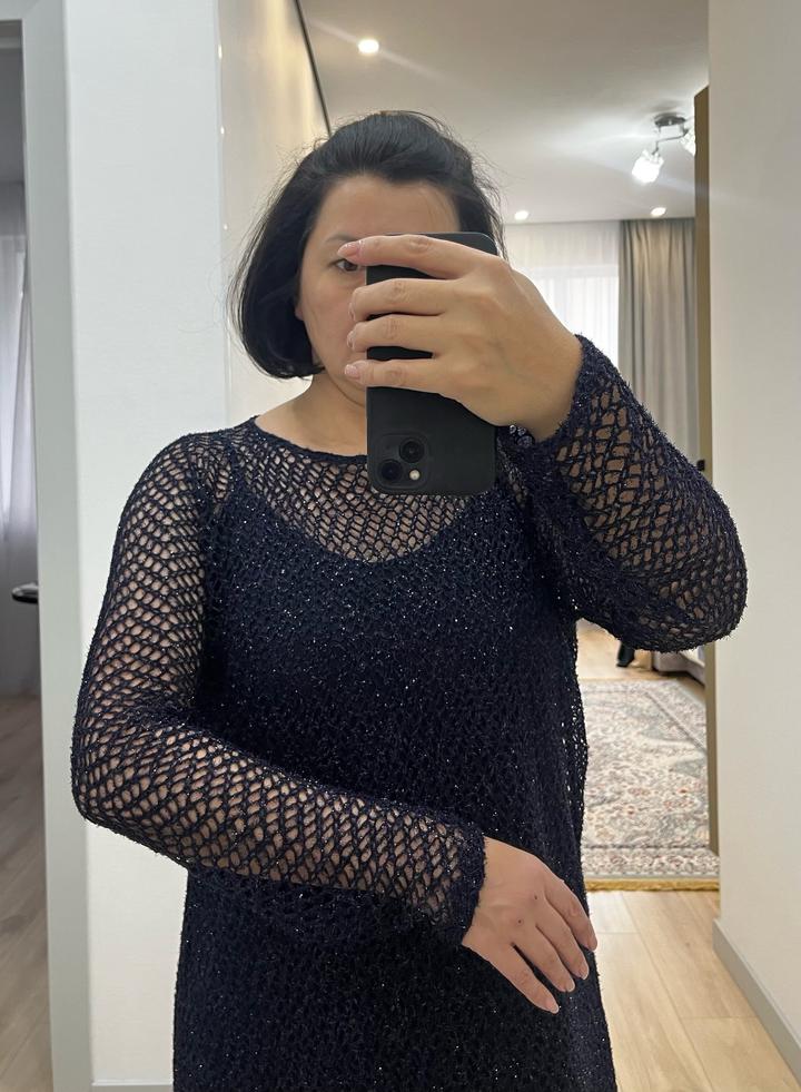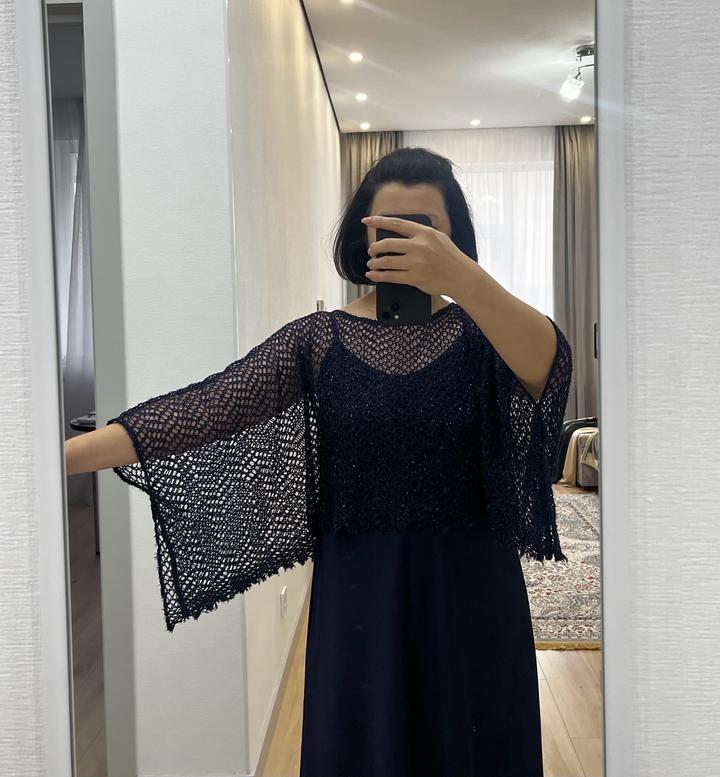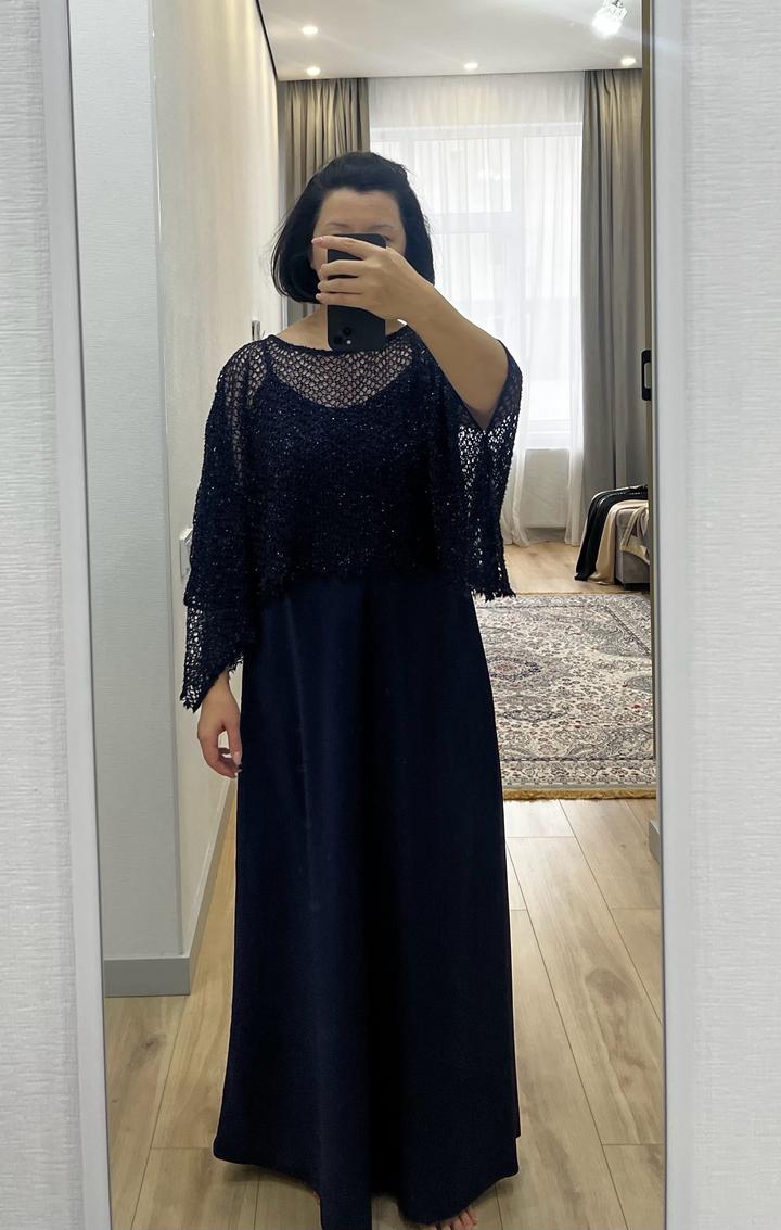 Женское платье 3 в одном, цвет темно-синий, размер 48. Первый вариант: платье-комбинация можно носить самостоятельно. Второй вариант: сверху платья-комбинации надевается платье-сетка. Третий вариант: на платье-комбинацию надевается накидка. Каждый вариант смотрится очень красиво, сшито на заказ, пошив идеальный. Артикул: 323273